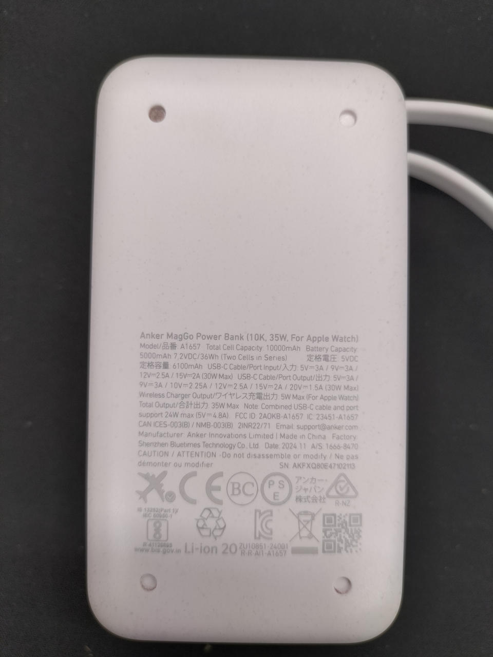 Apple Watch用充電パッド搭載 / USB-Cケーブル一体型 / 合計最大出力35W / 入出力最大30W / 10000mAh / ディスプレイ搭載 |