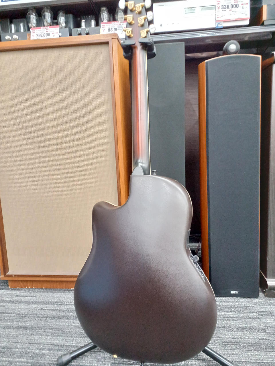 Ovationの中では一番薄いスーパーシャロウボディ、独特な煌びやかな音でライブのみならず宅録にも威力を発揮しそうです |