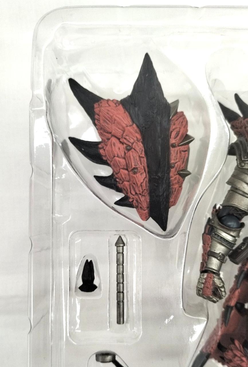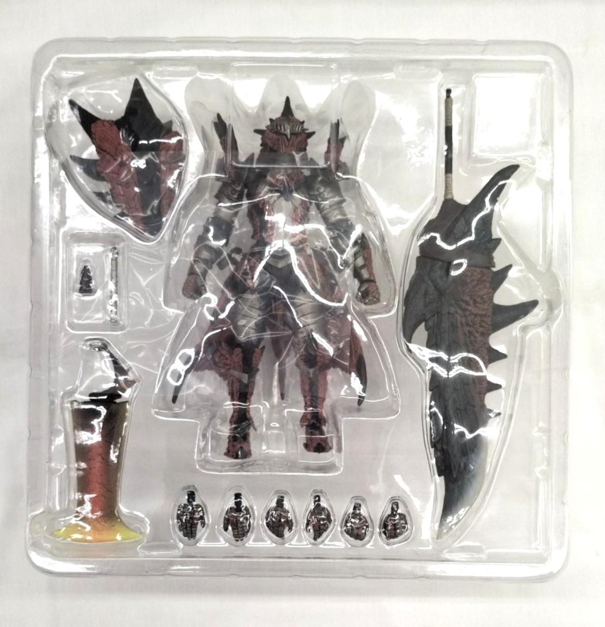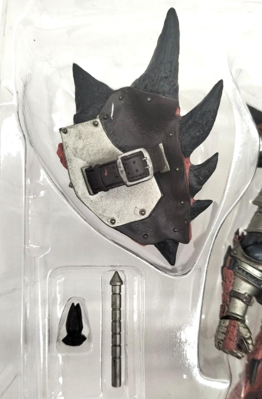 身長よりも大きい17センチ大の“炎剣リオレウス”が付属、両手でかまえたり背中に装備もできます。 |