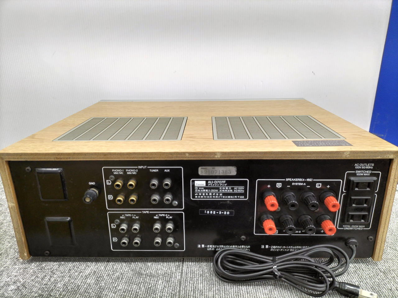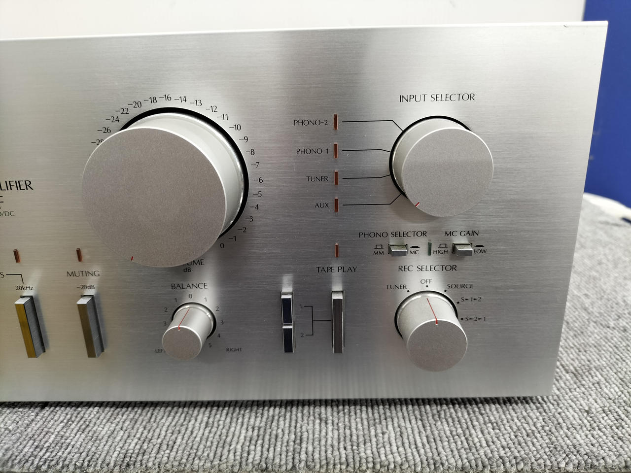Phono1、2 MM:2.5mV/47kΩ Phono1、2 MC(high/low):100μV、250μV/100Ω Tuner、AUX、Tape play1、2:250mV/27kΩ |