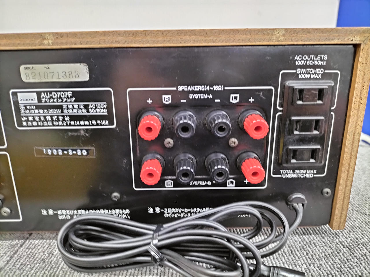 実効出力:95W+95W(8Ω、10Hz~20kHz、THD 0.005%) 95W+95W(8Ω、1kz、THD 0.003%) |