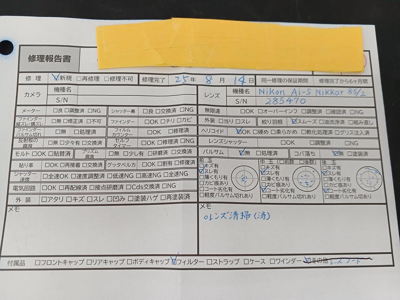 2025/08/14専門業者にてメンテナンス済み、内容と状態は別紙参照ください |