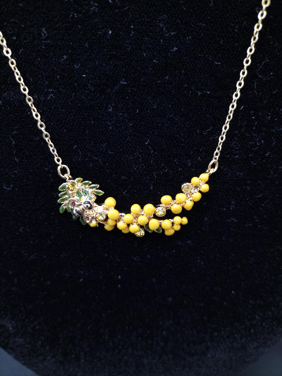 ミモザの細工が緻密で美しいネックレスです。メーカー参考価格¥2,3000。