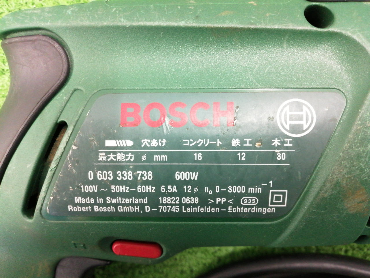 穴あけ能力 コンクリ:16mm 鉄工:12mm 木工:30mm |