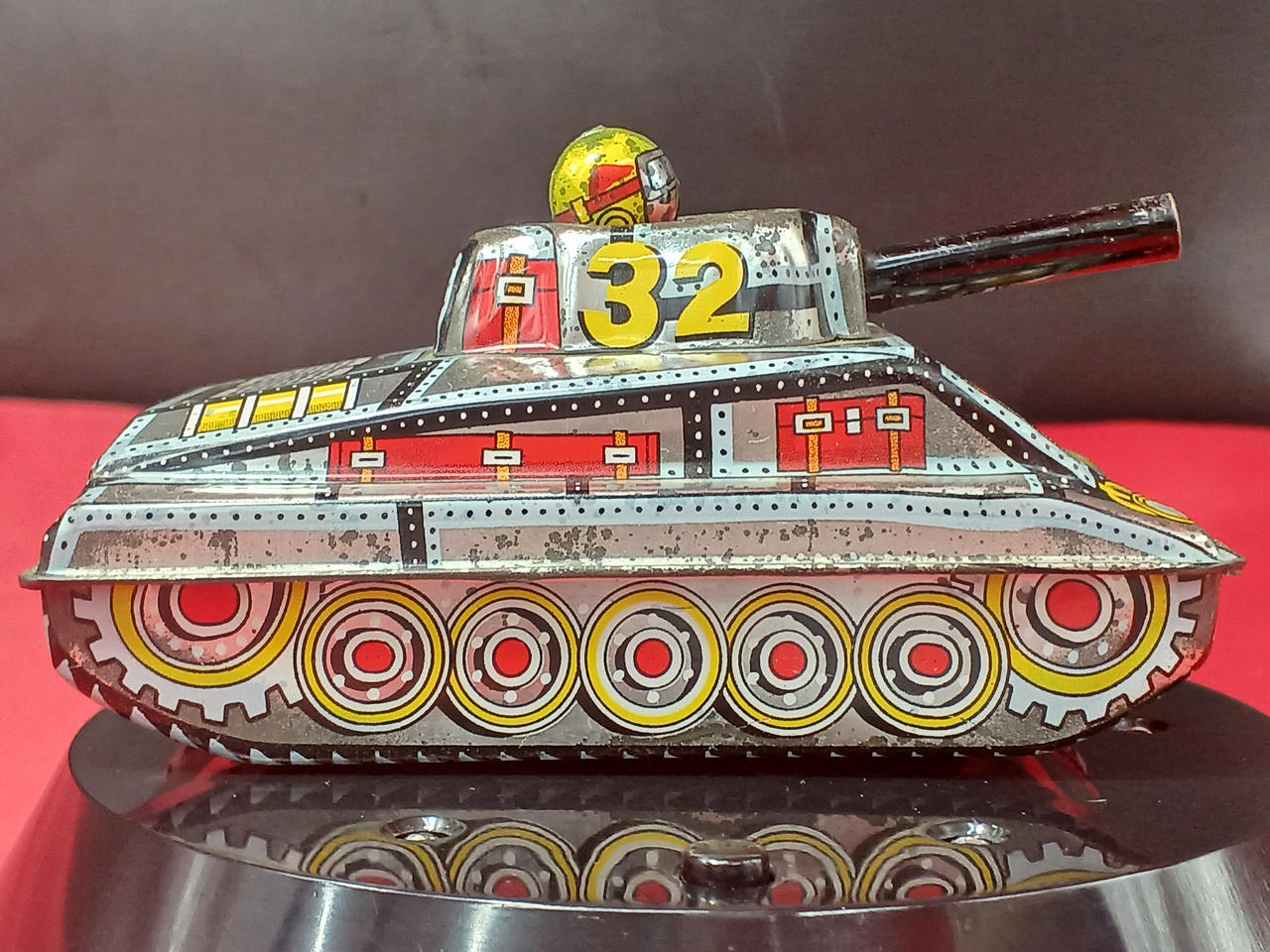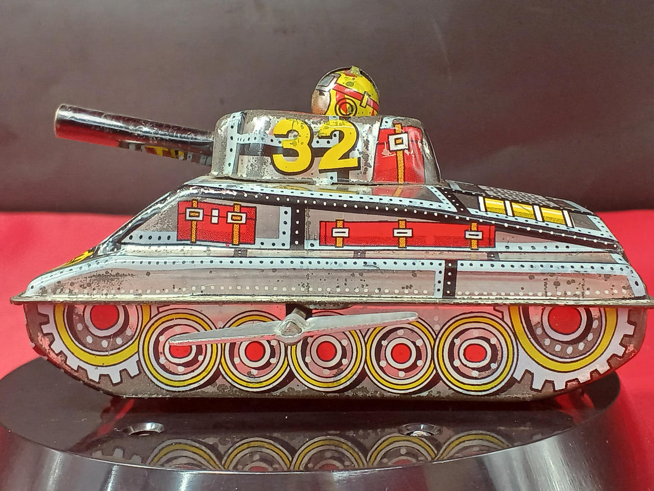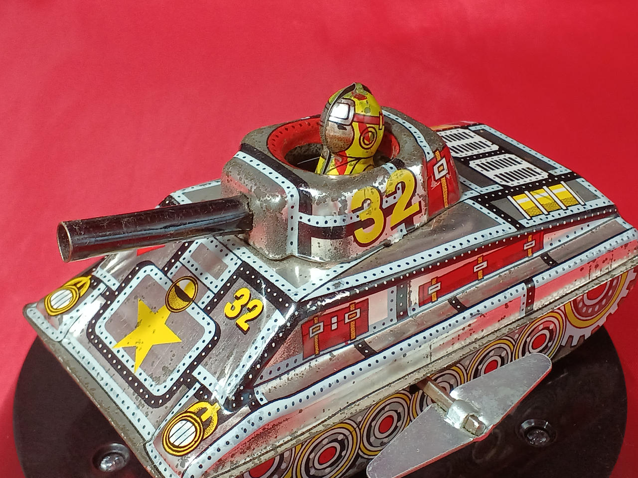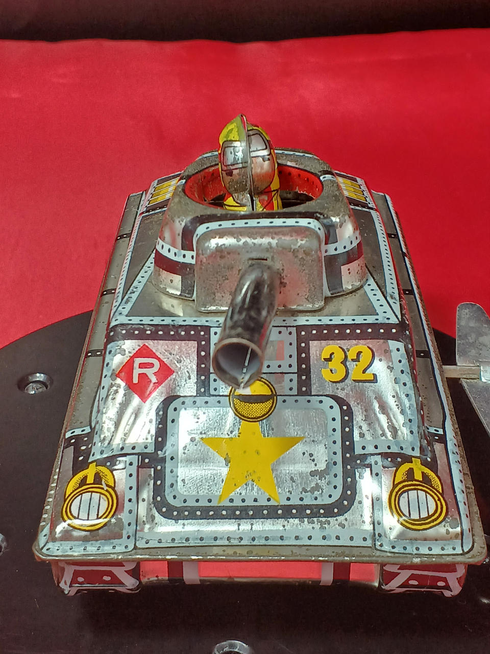 イタミ、劣化、錆びなど。ゼンマイ動作○。運転手が上下しながら走ります。約12cm。 |