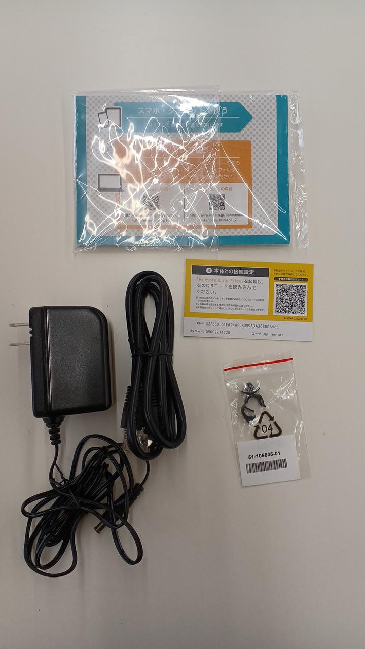 化粧箱、取扱説明書、アダプター |