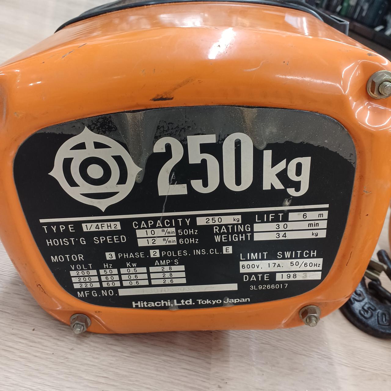 定格荷重:250kg。標準揚程:6m。