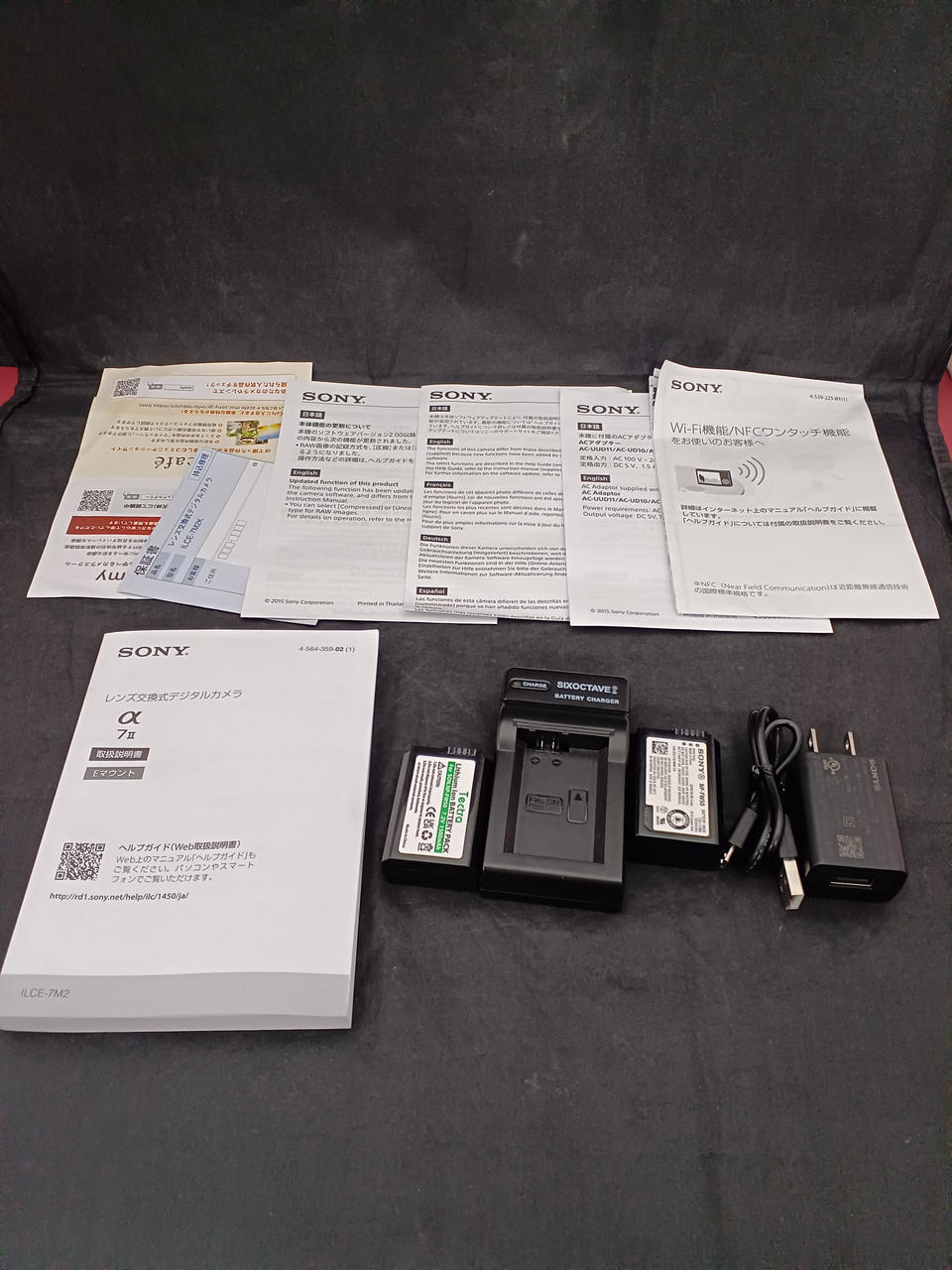 説明書・純正バッテリー・純正ACアダプタ・USBケーブル・他社製充電器・他社製バッテリー |