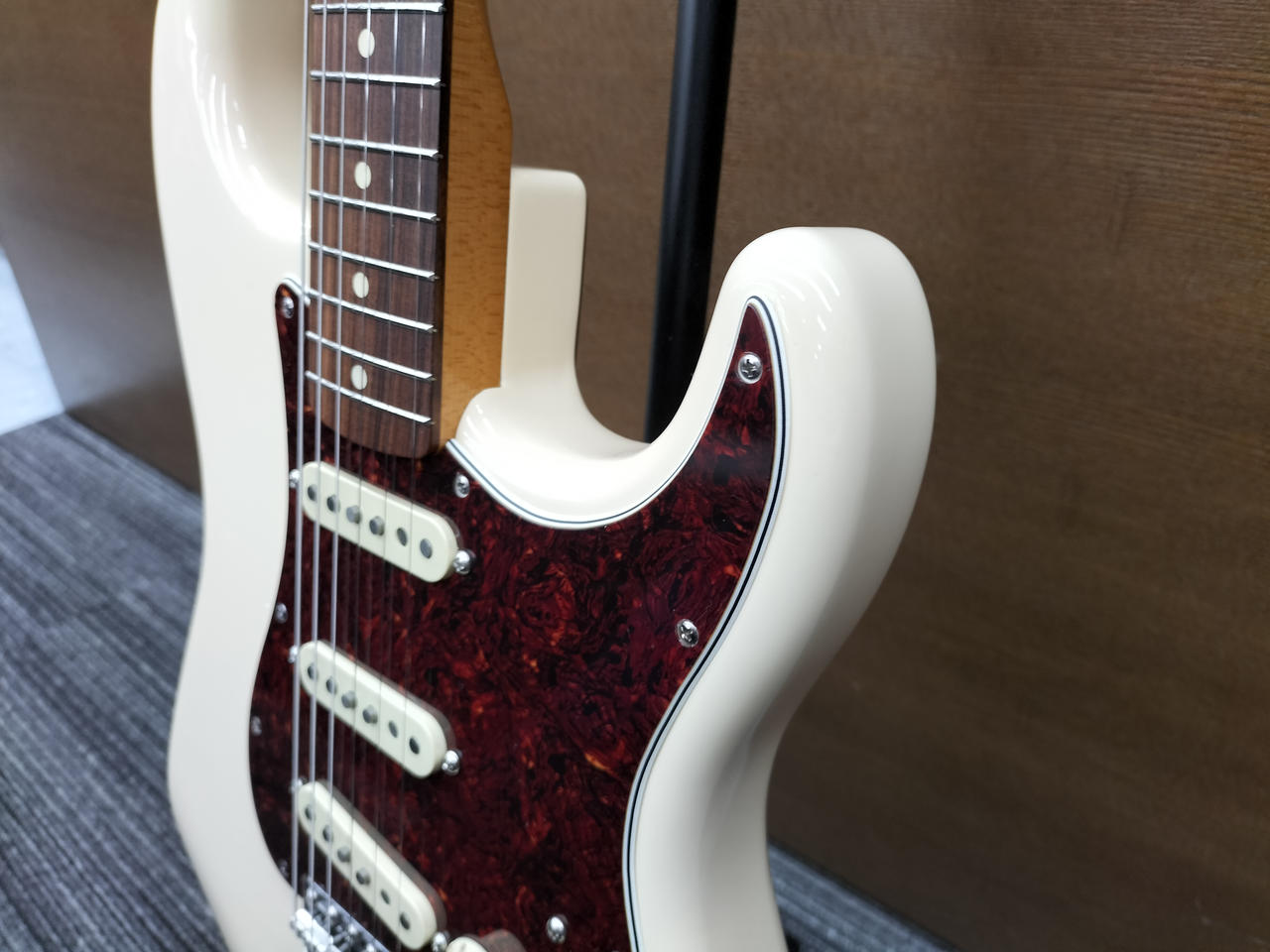 非常に高いコスパでトラディショナルな仕様を再現した人気モデルVINTERA 60s STRATOCASTERです!こちらは限定生産のマッチングヘッド仕様です!べっ甲ピックガードと相まって目を惹くルックスに仕上がっています!往年のヴィンテージトーンを再現しておりパンチと透明感に溢れたフェンダートーンを実現しています! |