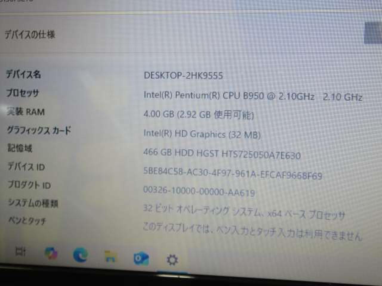 Windows 10 Home 32bit (認証なし) |