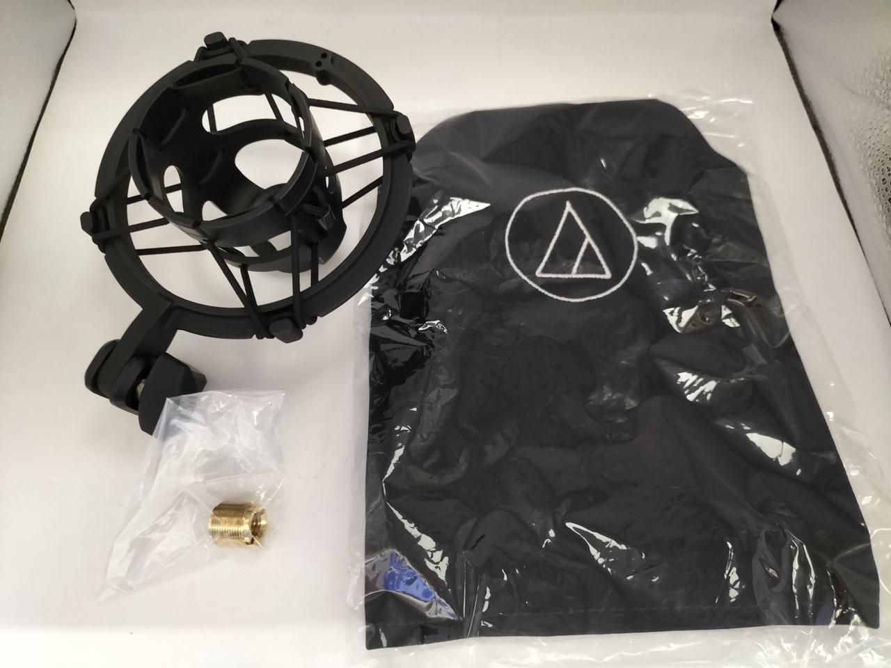 化粧箱、取扱説明書、専用ショックマウントAT8449a(5/8インチネジ)、マイクポーチ |