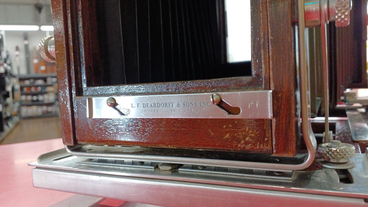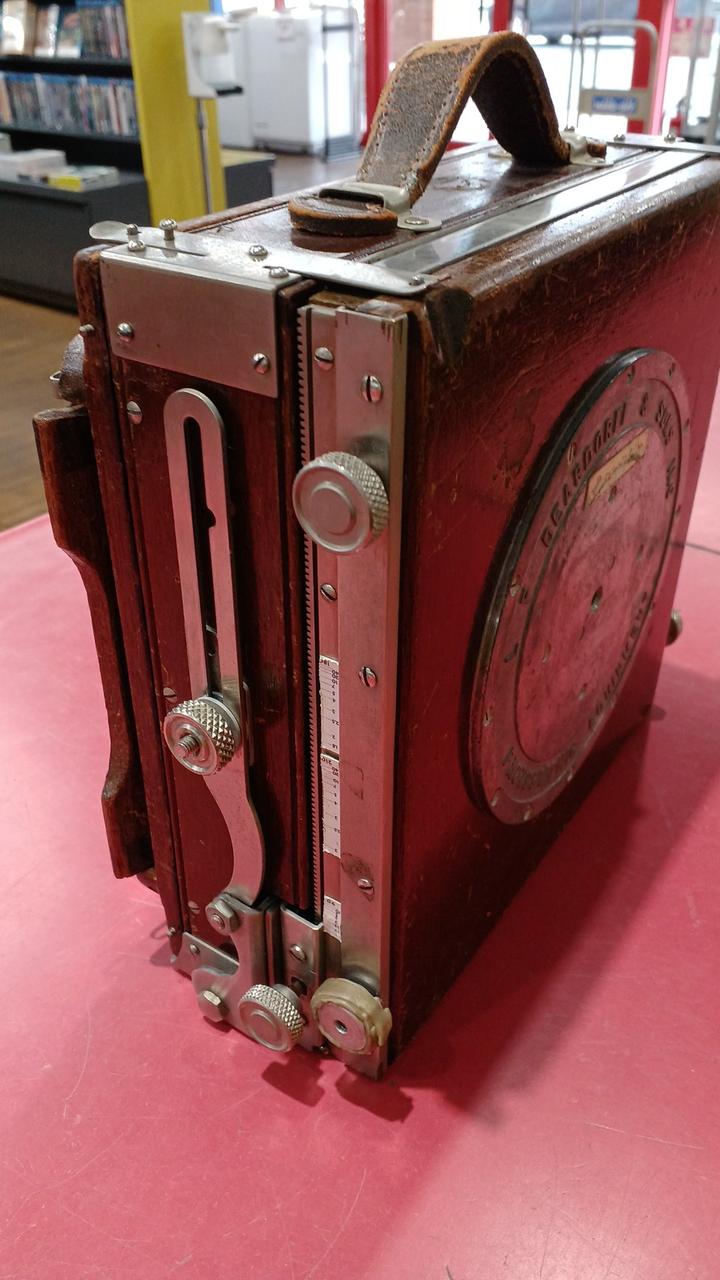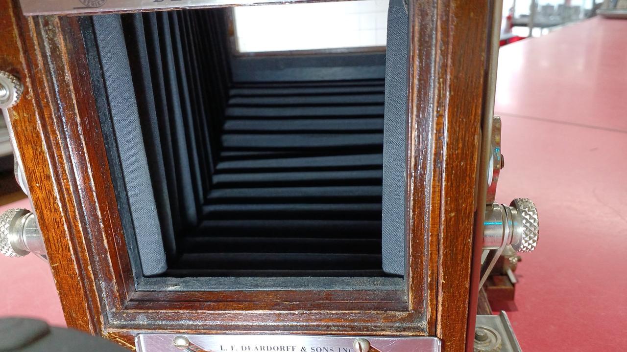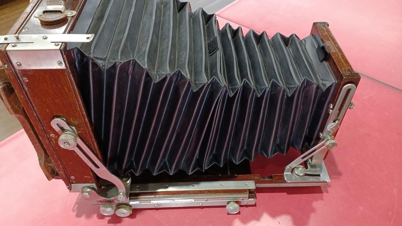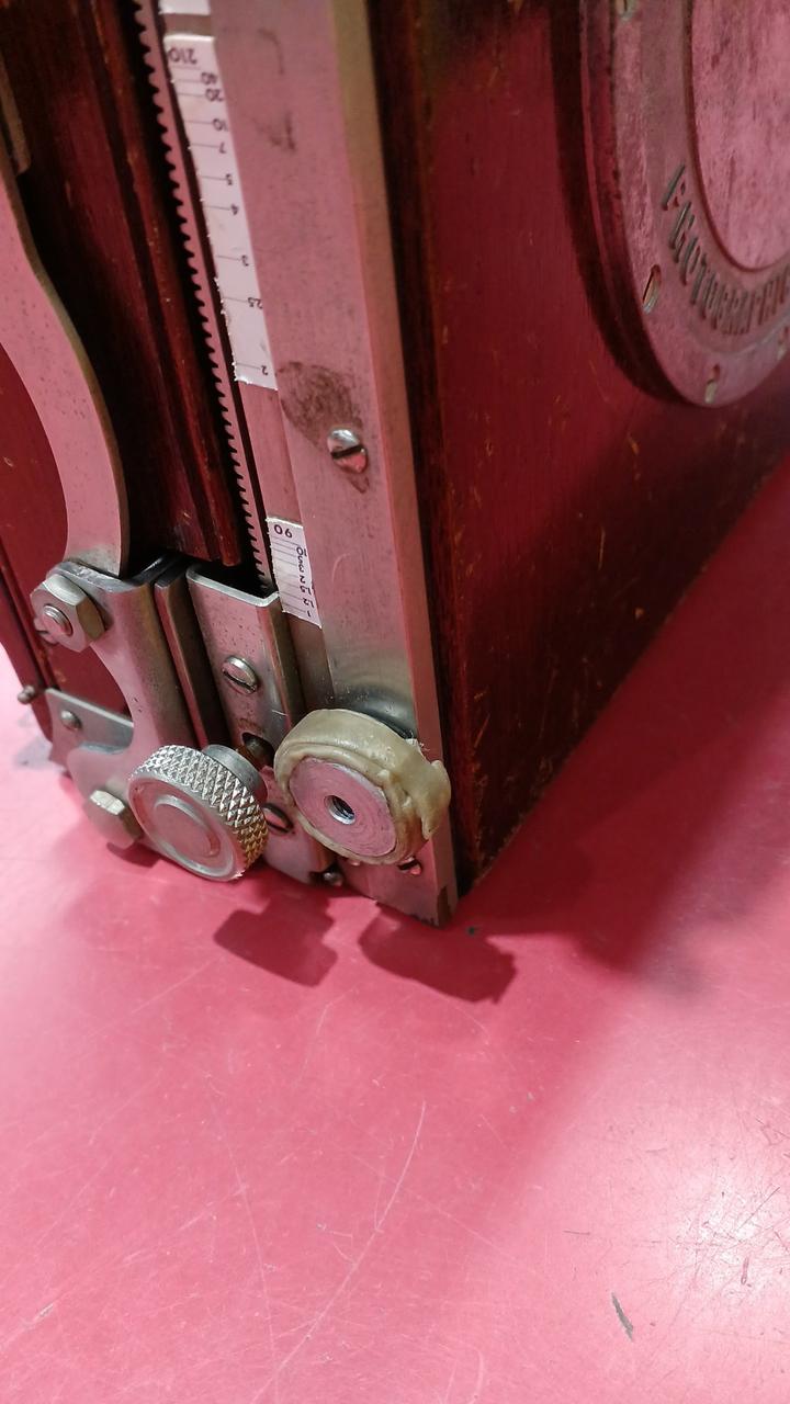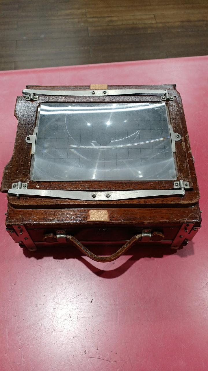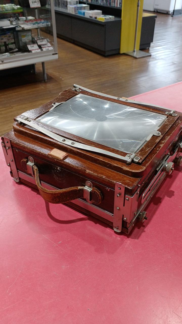 各部分が年代以上に傷んでいるように見えます。蛇腹に穴は空いていないですが劣化しています。前オーナーが使い易いように加工してある箇所が見られます。動かせる部分が正常なのか判断ができず、傷みも大きいためジャンク品です。