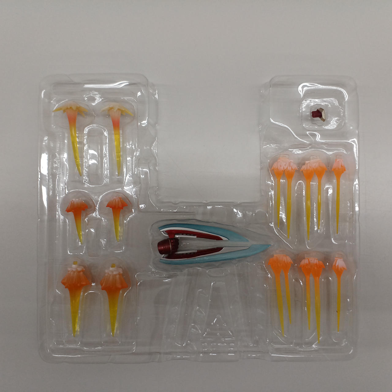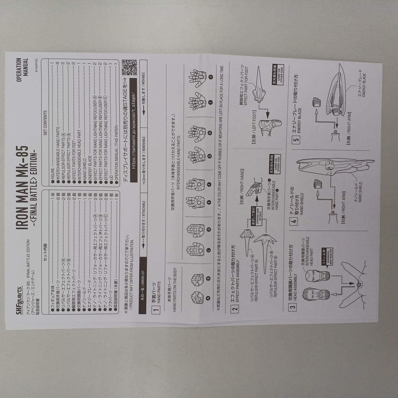 フィギュア本体、交換用頭部、交換用手首左右各4種,エナジー・ブレード、リパルサーエフェクト一式(計6点),ナノ・ライトニング・リフォーカサー,ライトニング・リフォーカサー用エフェクトパーツ一式(計6点),ナノ・シールド,説明書 |