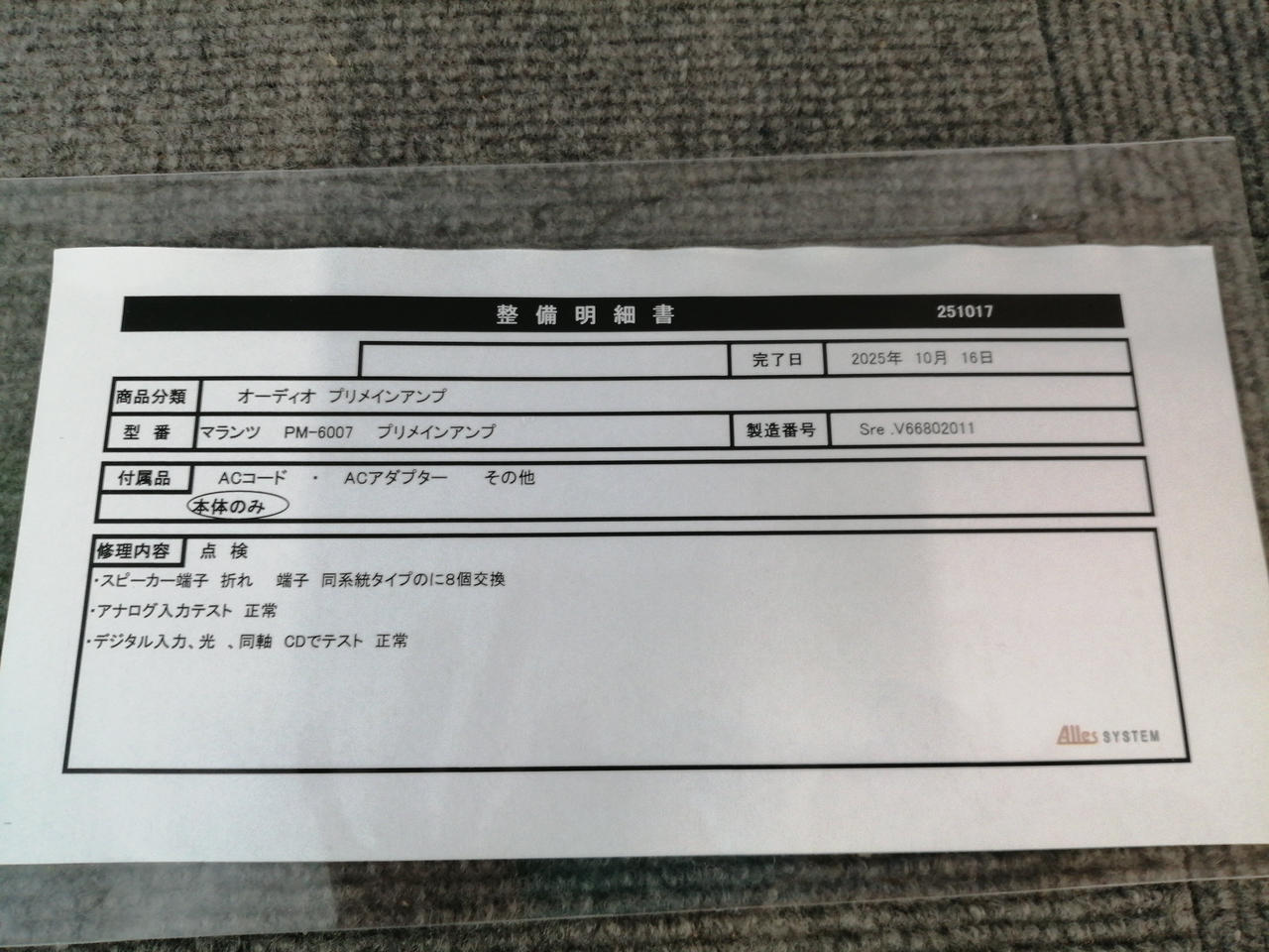 2025.10月当店指定業者にてメンテナンス済み |