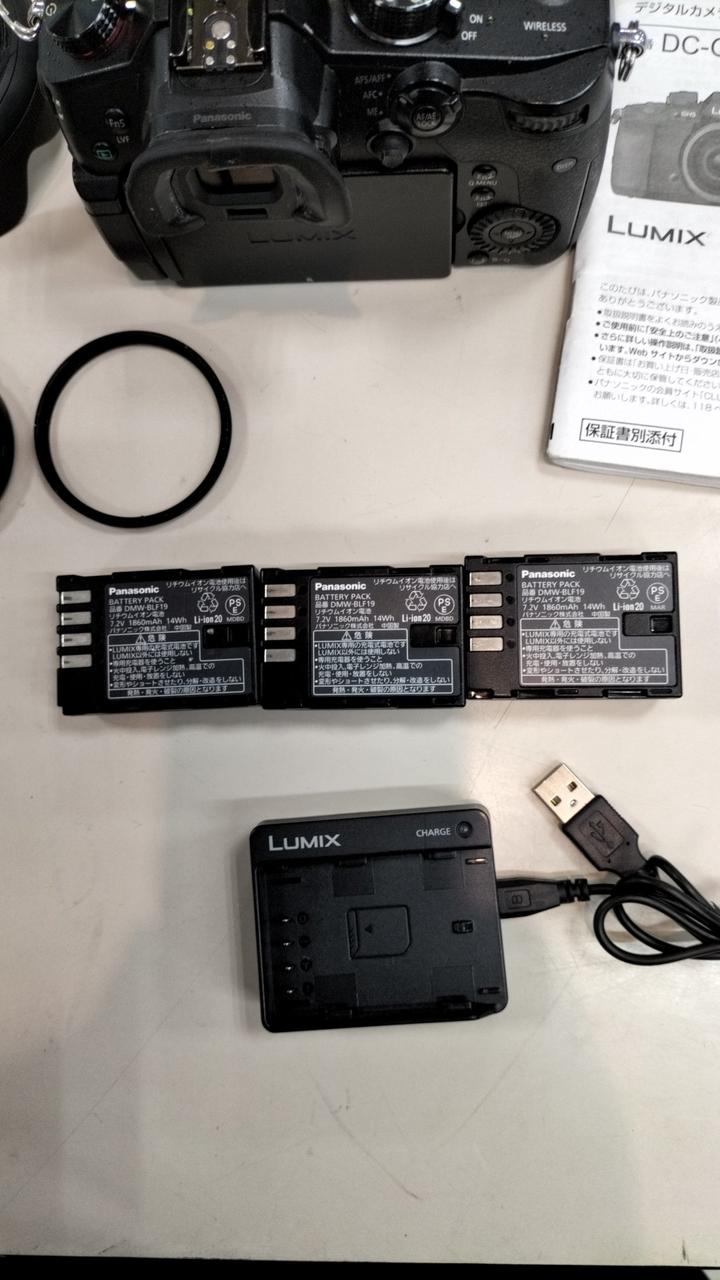 説明書、充電器、バッテリ3個(保証外。書込み有り。)、レンズキャップ、フード付属。 |