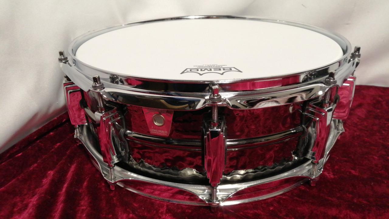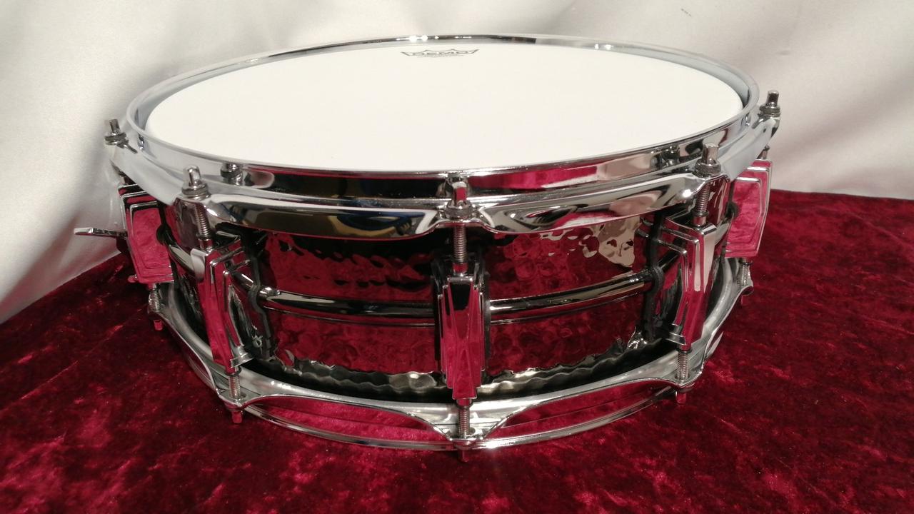 ”ブラックビューティ”の愛称で根強い人気のラディックの代名詞的スネア。ブラックニッケルブラスシェルにハンマード仕上げを施したルックスからの出音は、個性的ながらも聞き馴染みのある”あの音”がします。弾けるような倍音と芯のある抜け感は、ジャンルを超えて愛されている理由がわかる説得力のあるサウンドです。 |