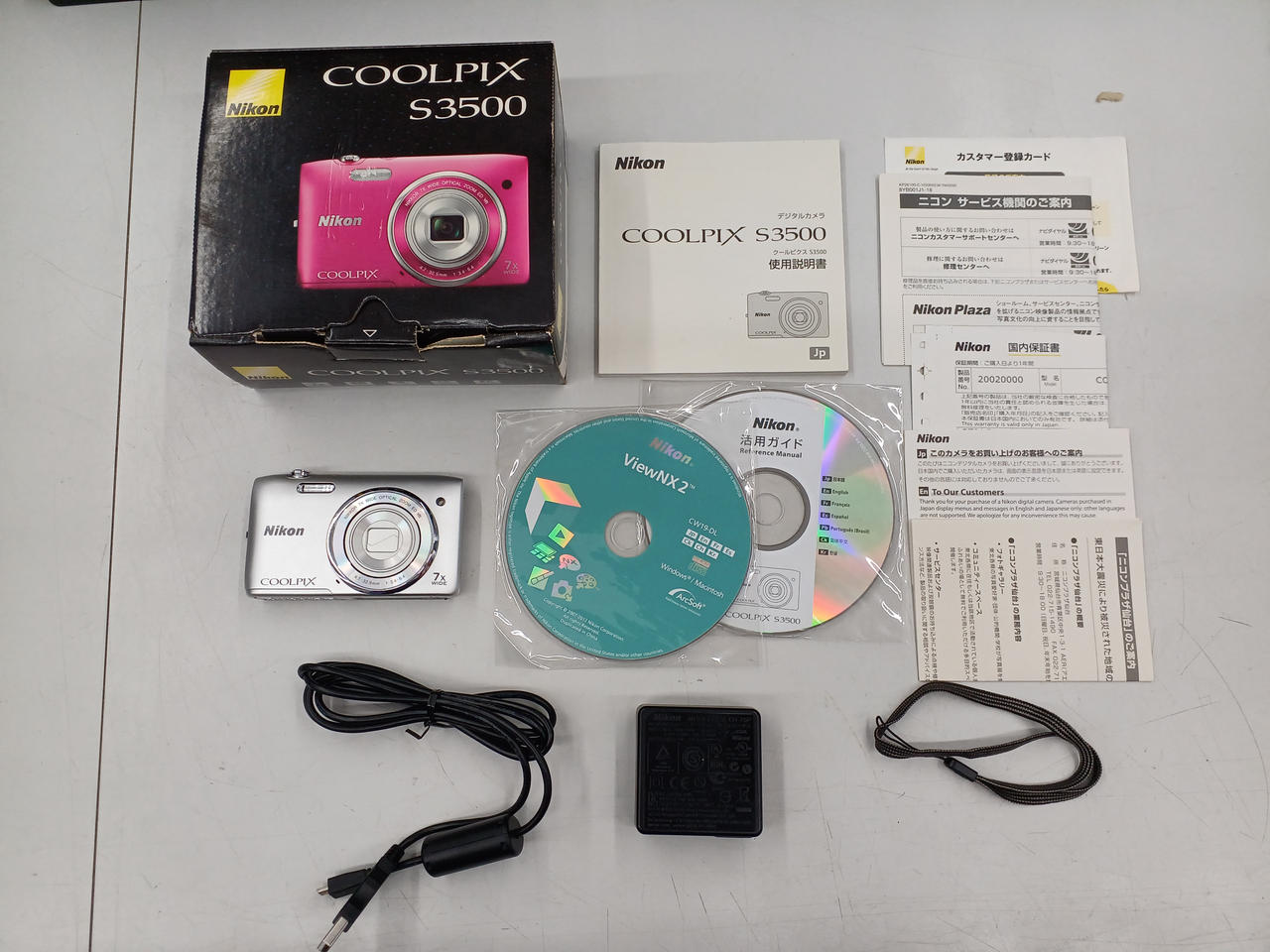 箱、システムディスク、充電器、バッテリー×1、SDHCカード(8GB)、ストラップ付属。 |