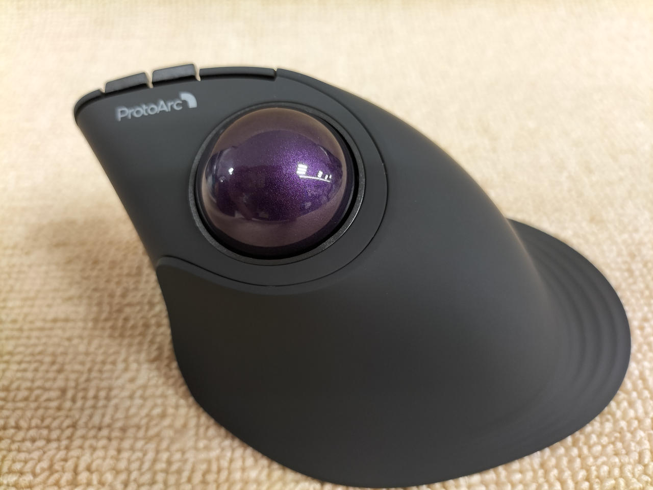 34mmのボールが大きく、操作性が高く、手や腕の構造に合わせてエルゴノミクスデザインされたバーティカル型トラックボールです。5段階のDPI調整可能、デバイス3台接続可能電池不要のTypeC-USB充電式、ワイヤレスなので省スペース |