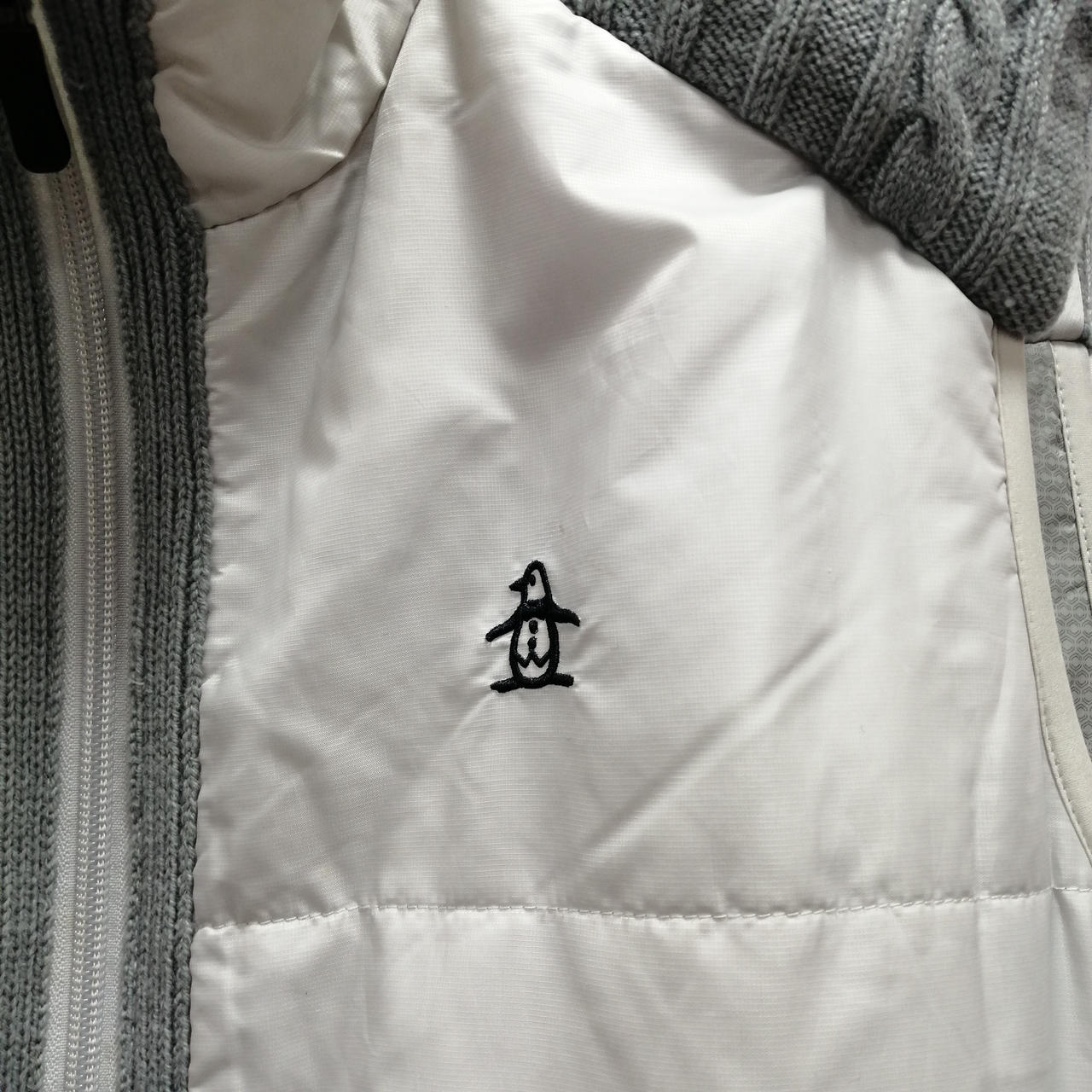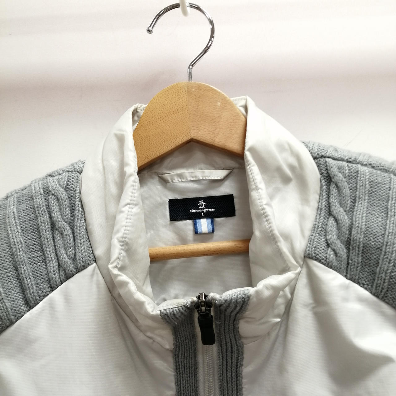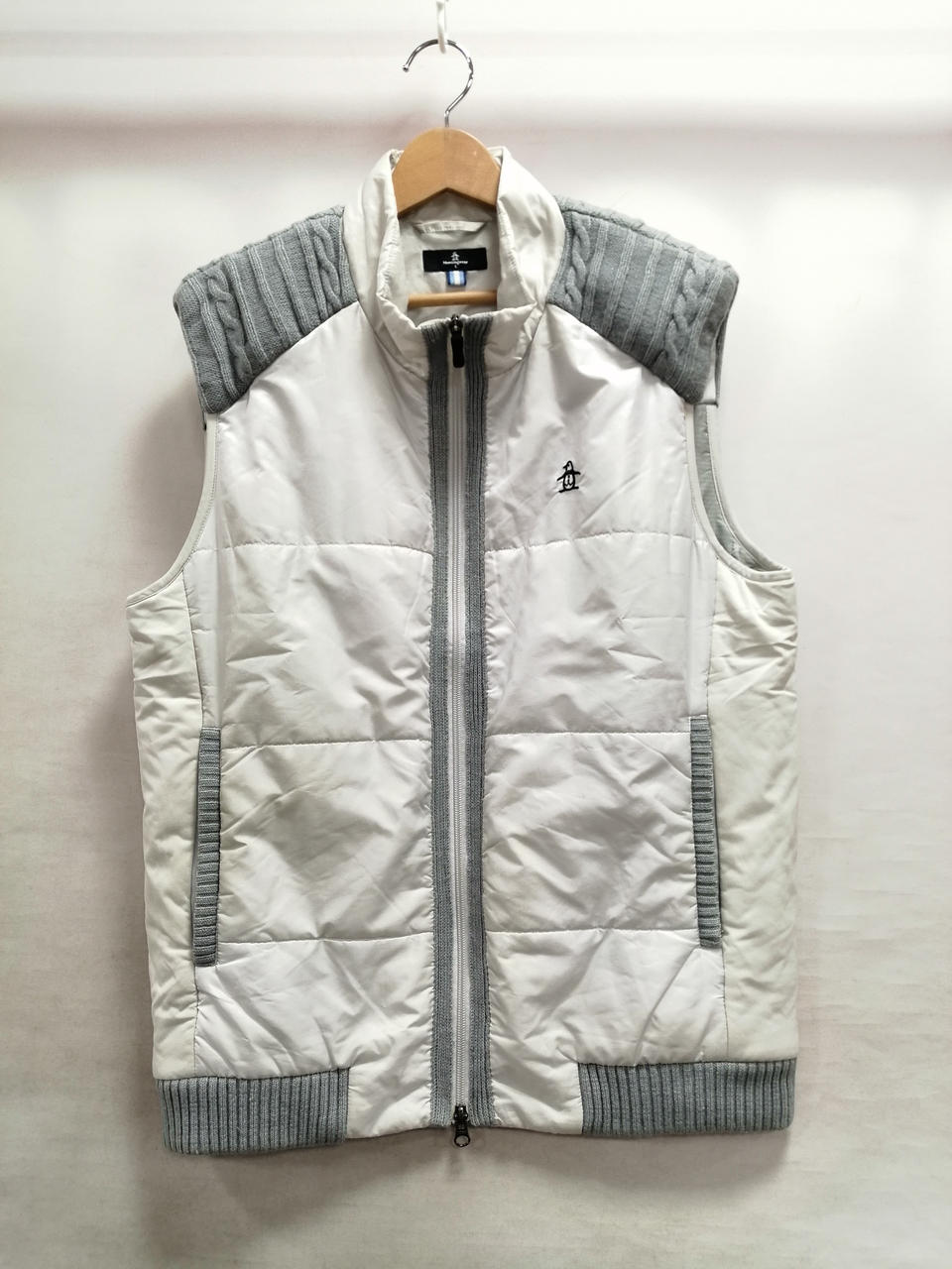 マンシングウェアの異素材中綿ベストになります。お汚れなどの使用感がございますがまだまだご着用いただけます。 |