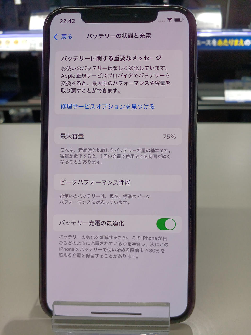 バッテリー最大容量:75% サービス |