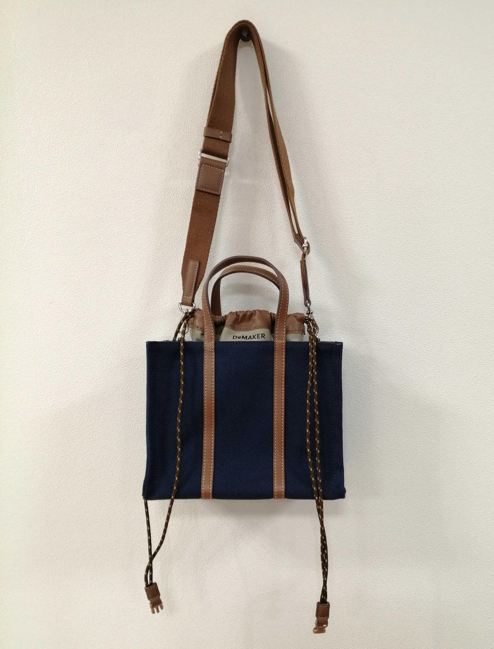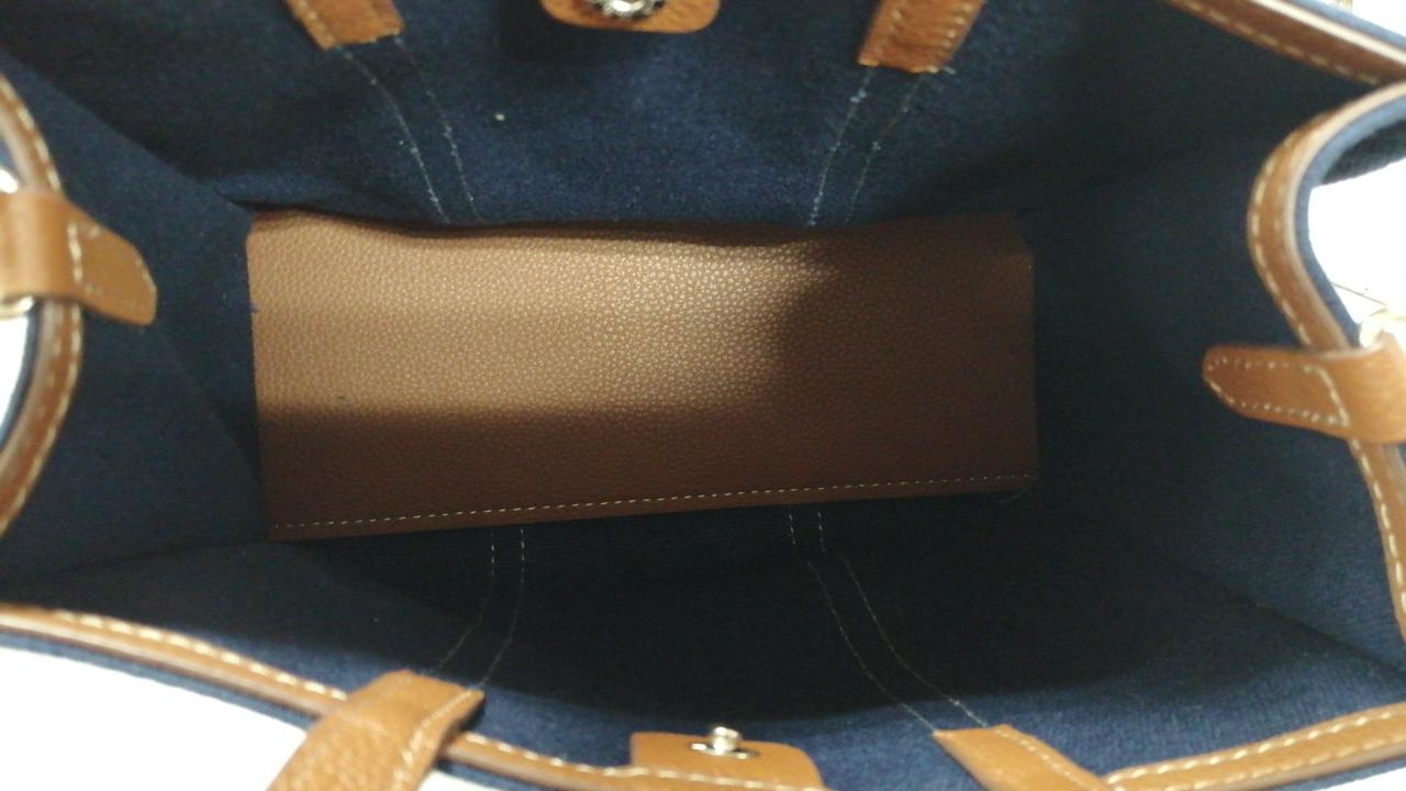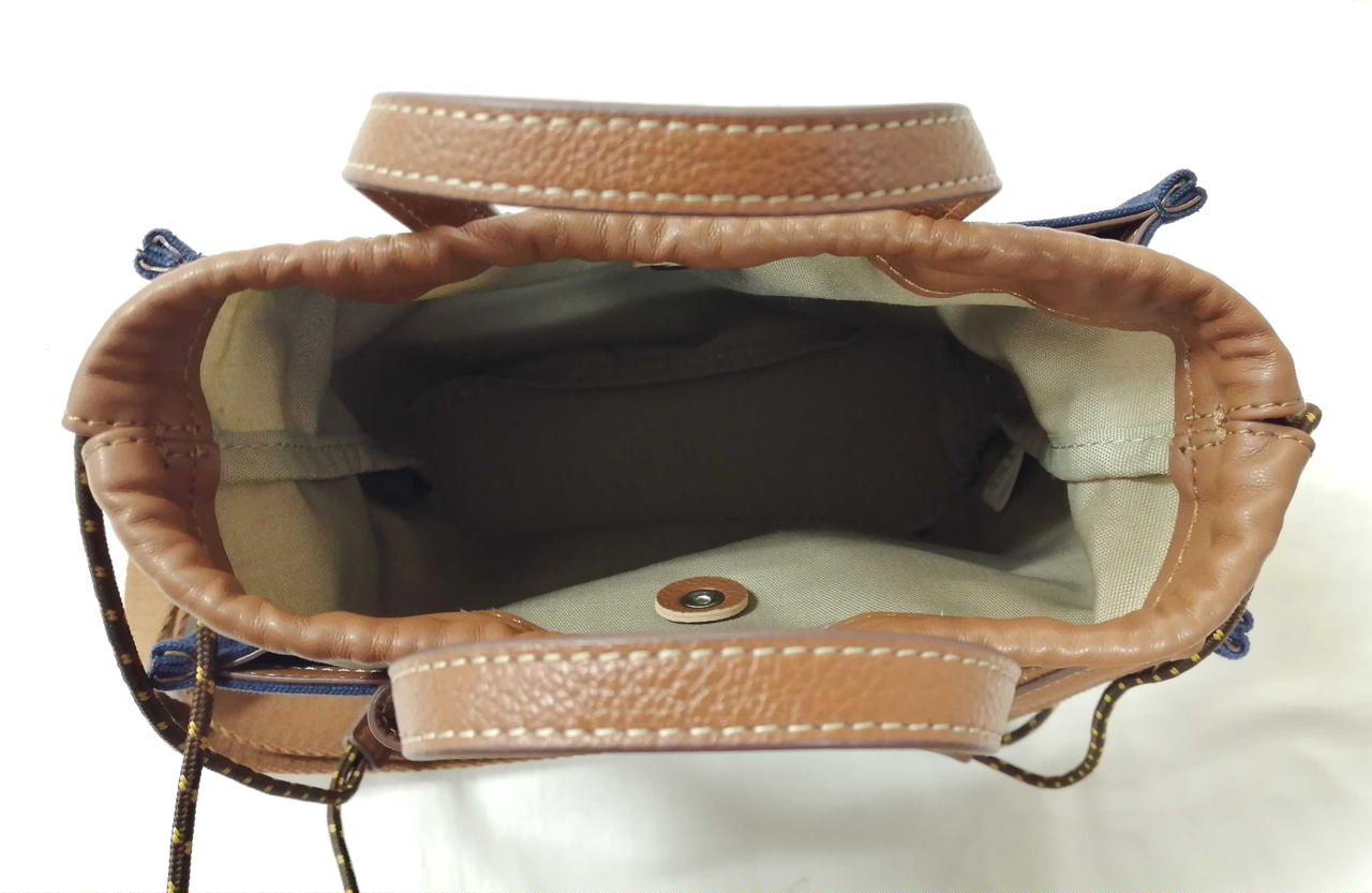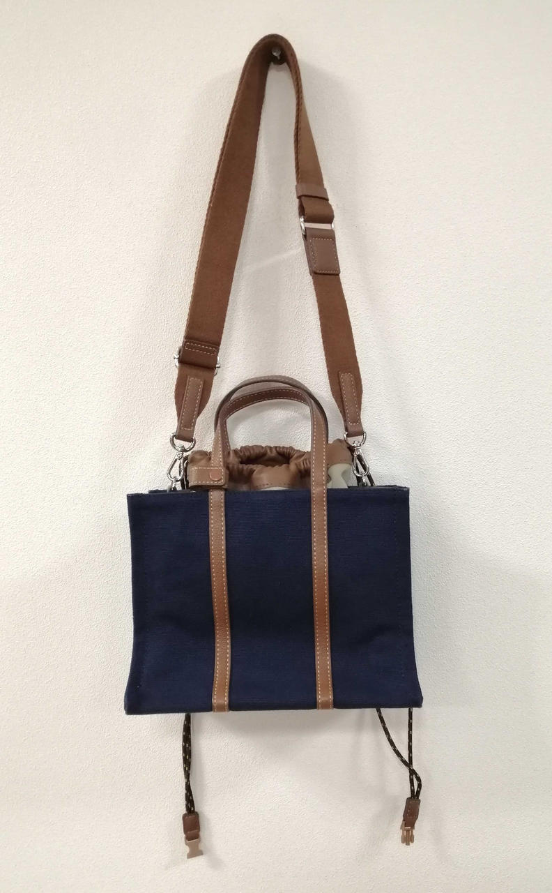 ネイビーのキャンバス生地とブラウンのレザの切り替えデザインの逸品です! |