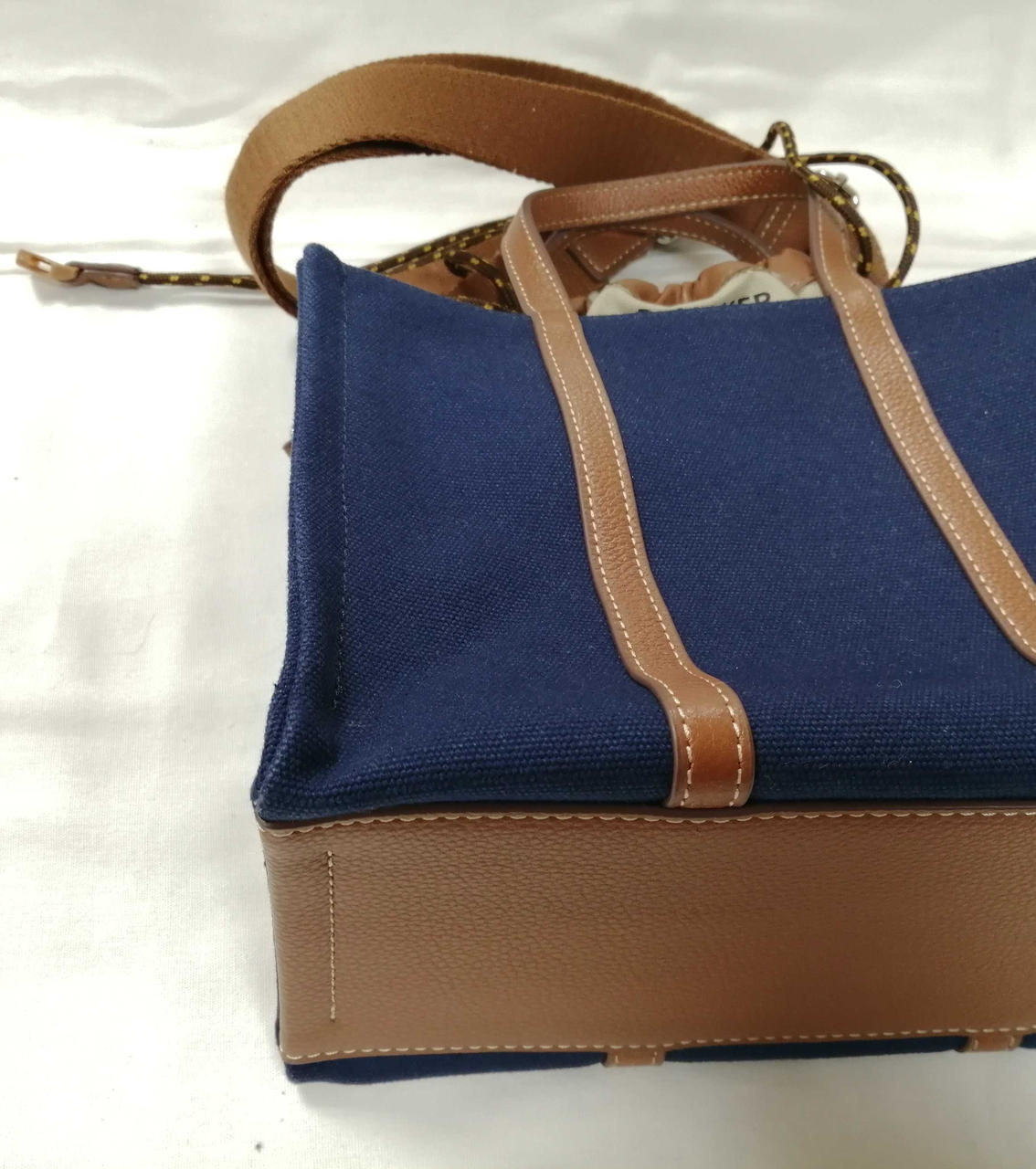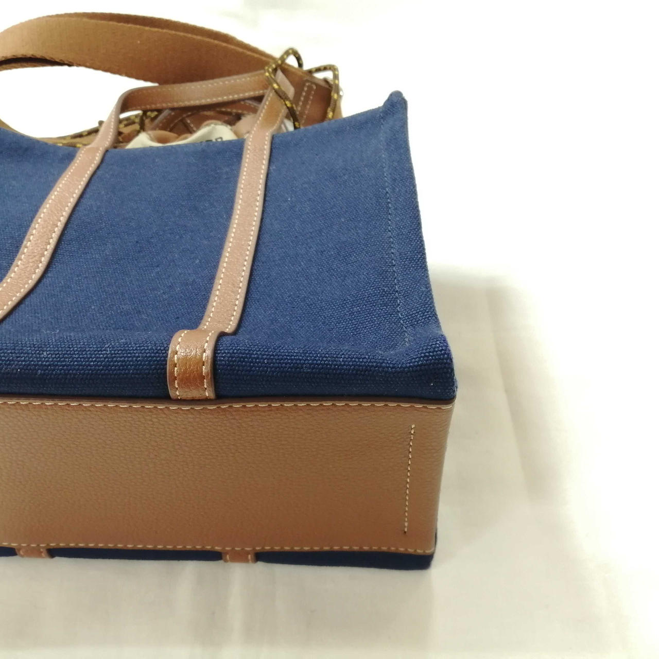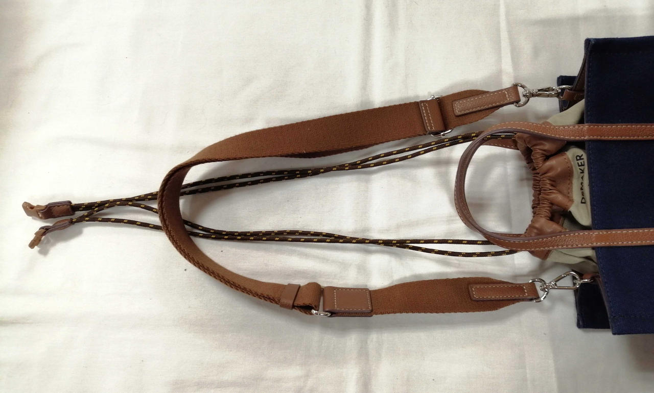 ネイビーのキャンバス生地とブラウンのレザの切り替えデザインの逸品です! |