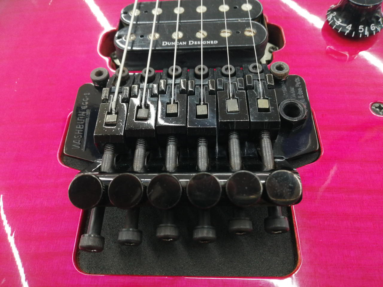 duncan designedピックアップを3基搭載。 トレモロアーム付属。 |