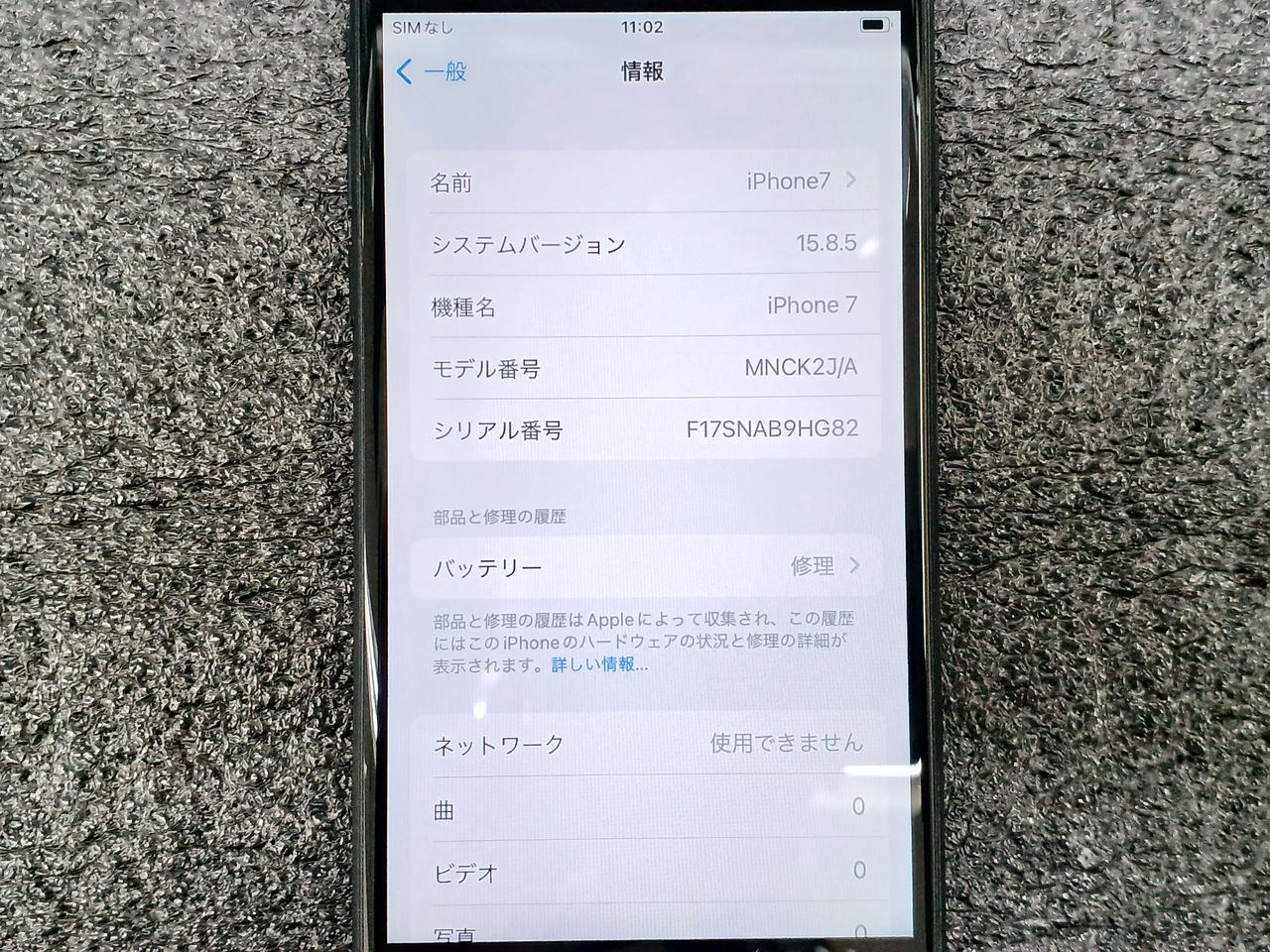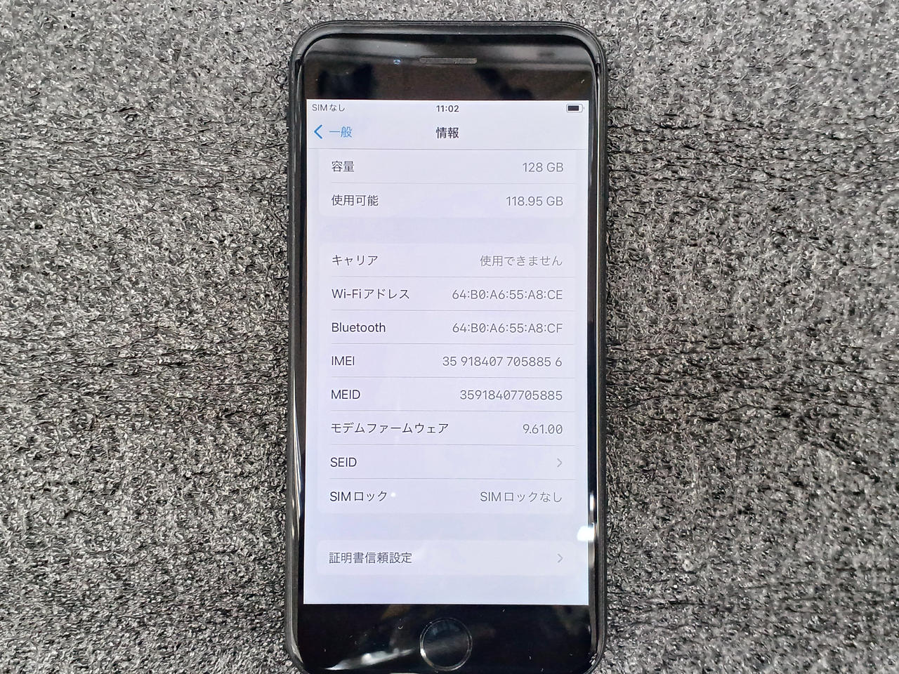 本体アクティベート済み。容量128GB、ios15.8.5(max)、バッテリーサービス表示、SIMロックなし、その他未チェックです。 |