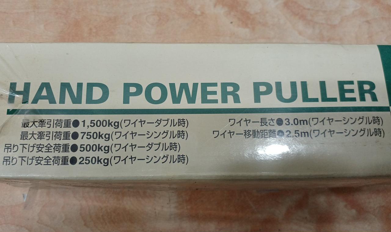 最大牽引荷重:1,500kg(ワイヤーダブル時)、750kg(ワイヤーシングル時) |