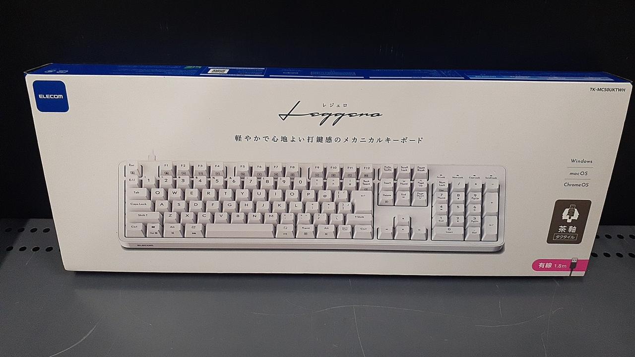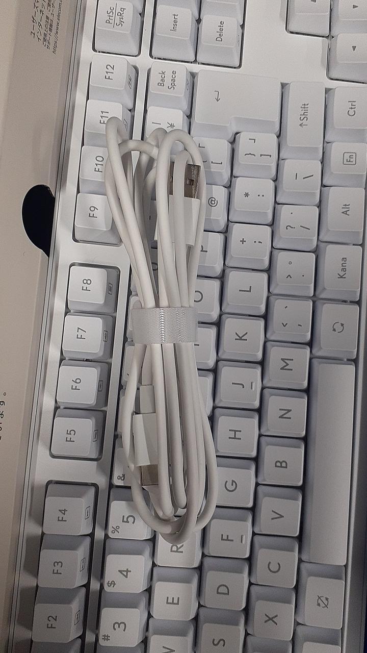 押した感触のわかりやすさと静音性のバランスにすぐれた茶軸搭載の有館フルサイズキーボード、着脱可能なUSB Type-Cケーブルを使用