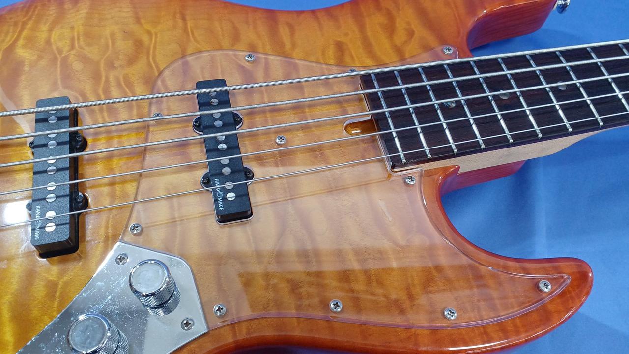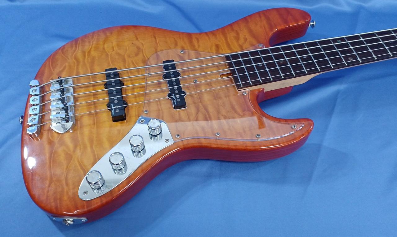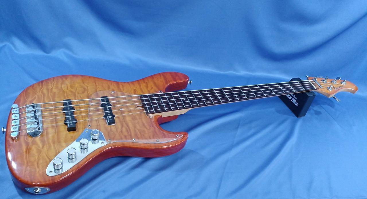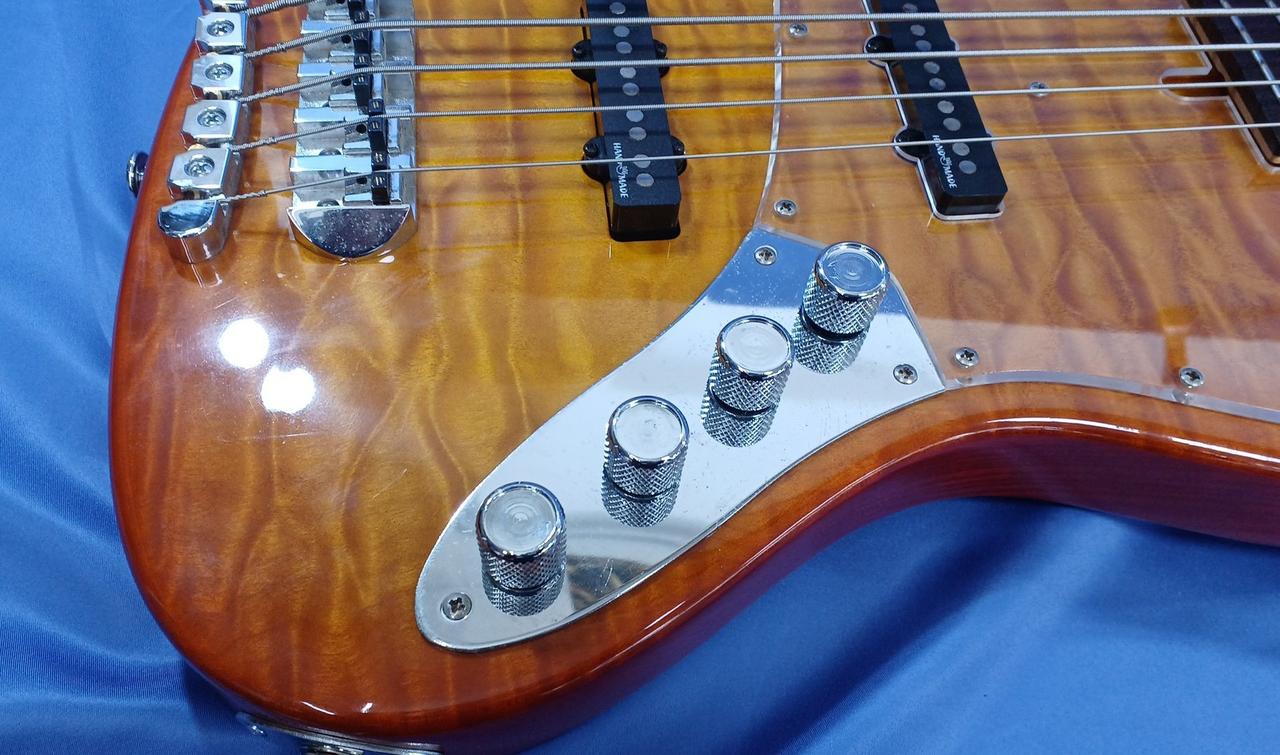 アクティブの5弦ベースでかなりパワーのある1本です。コントロールにはhighとlowのeqが付いており使いやすい個体となっております。 |