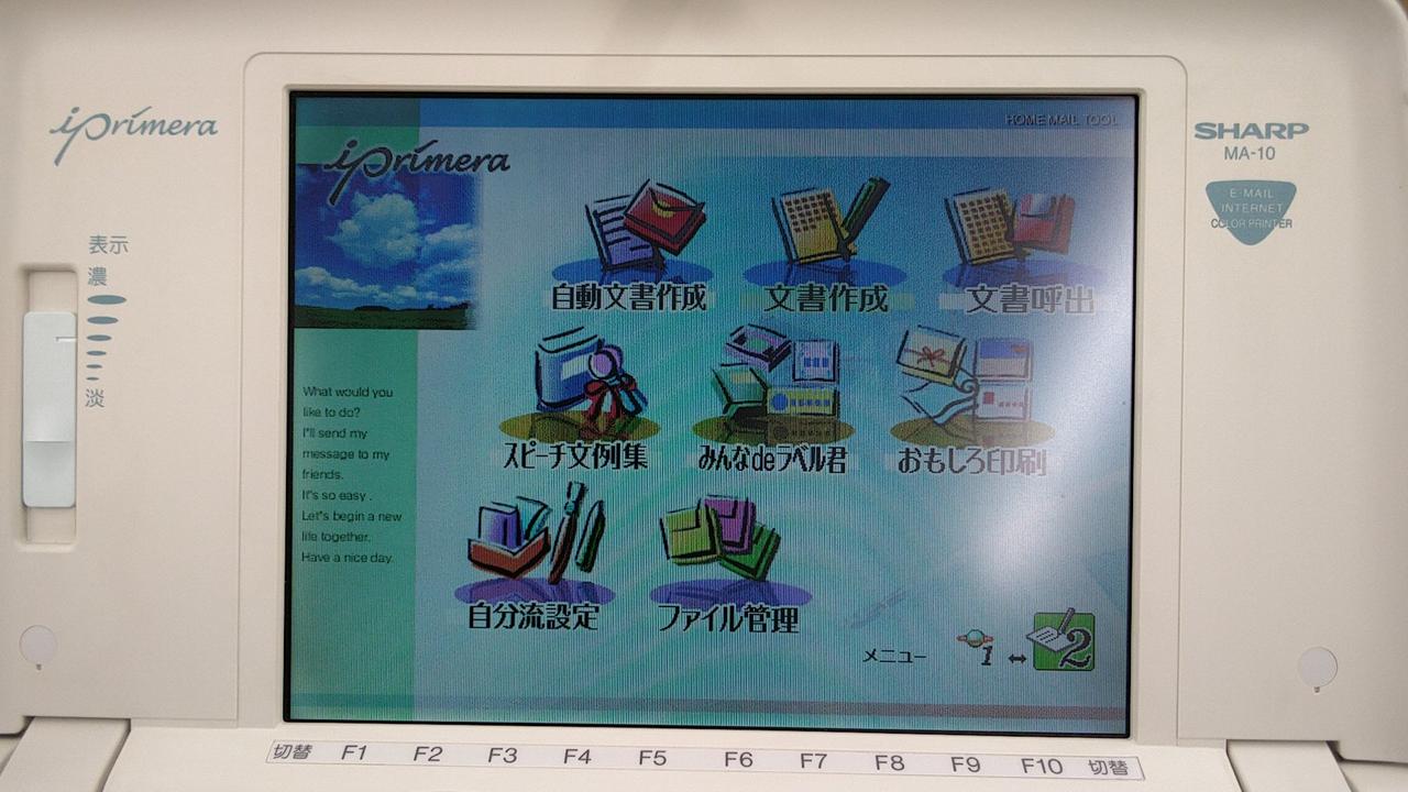 フロッピーの文書ファイル作成・保存と感熱紙・インクリボンでの印刷確認済み |