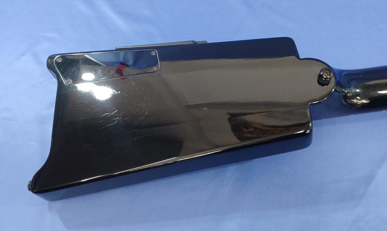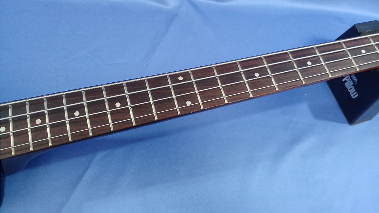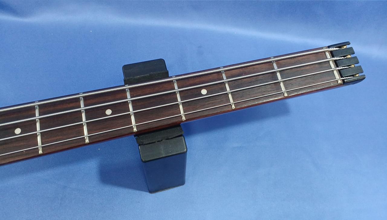ロングスケールだけどヘッド無し、ブリッジから後ろのボディ部分無し、これ以上はない必要最低限のコンパクト、持ち運びはもちろん、ステージでの取り回しもラクチンです |