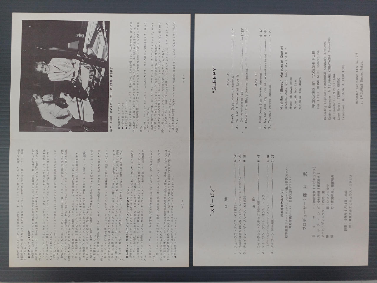 松本英彦カルテット/スリーピィ ※帯に書込みあり |