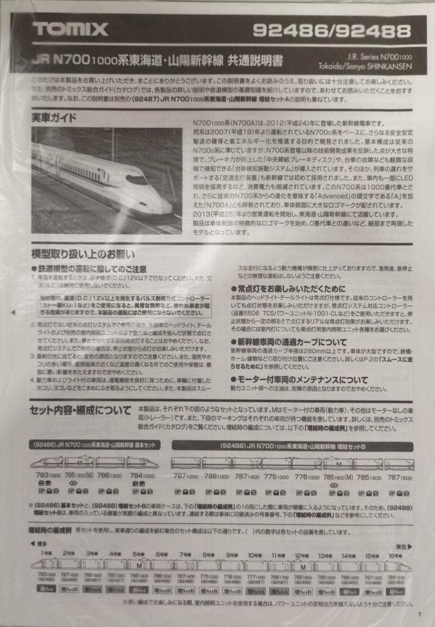 92487JR N700 1000系 東海道・山陽新幹線 増結セットA |
