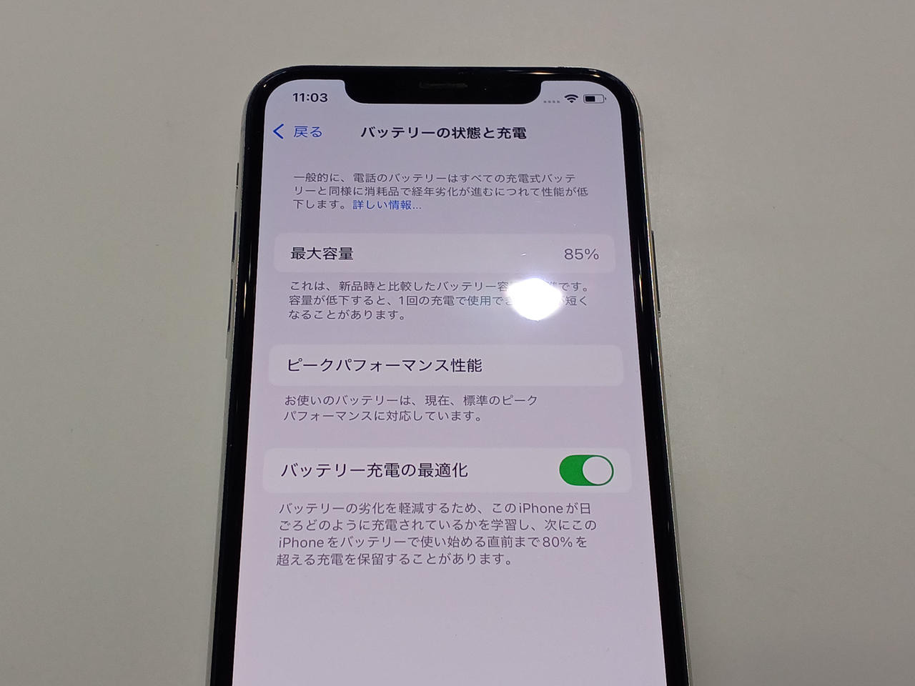 バッテリー最大容量85%(チェック時) |