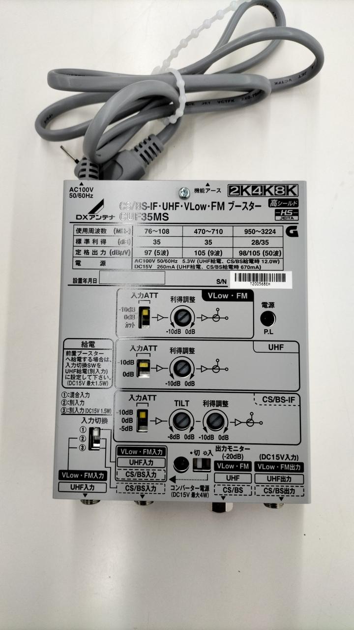雑音指数(NF):UHF:4DB以下/BS・CS:10DB以下入力レベル:UHF:44~80DBΜV/BS・CS:47~80DBΜV |