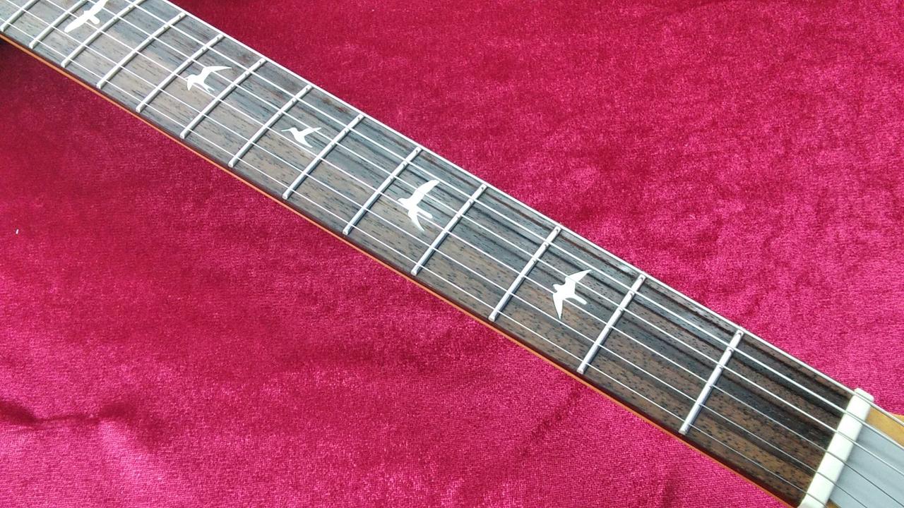 ネック状態良好、ナット交換不要、トラスロッド余裕あります。フレット残り8割前後、弦高12フレットで2.2-1.8mmに調整済み、現状のコンディションで音詰まりするポジションなし。 |