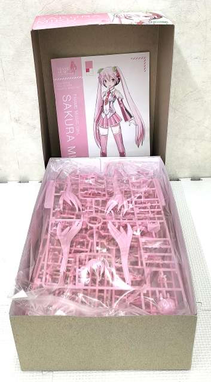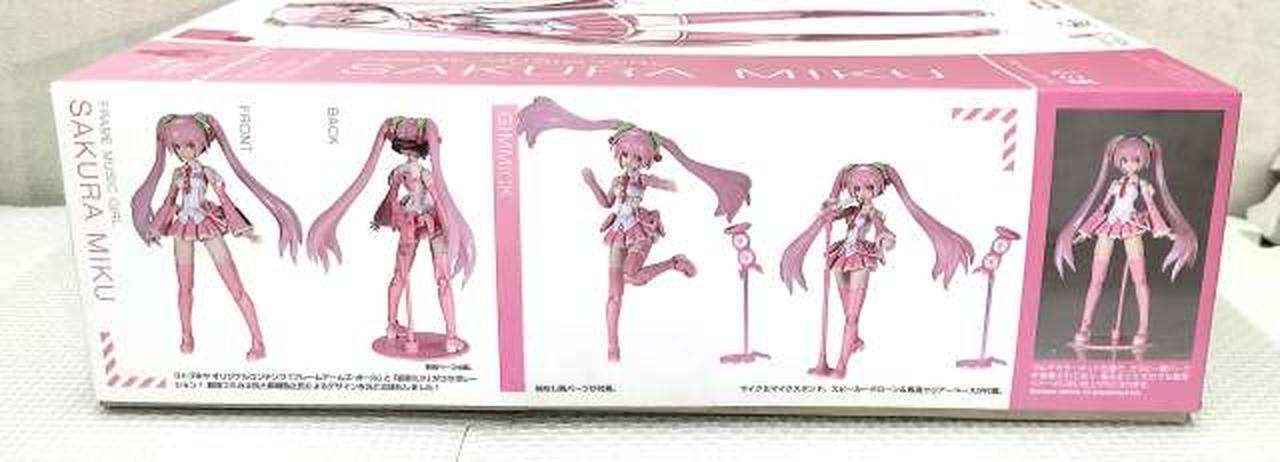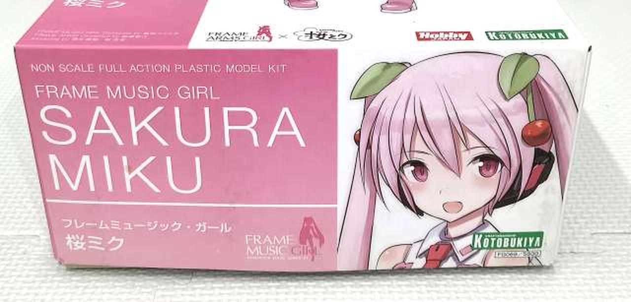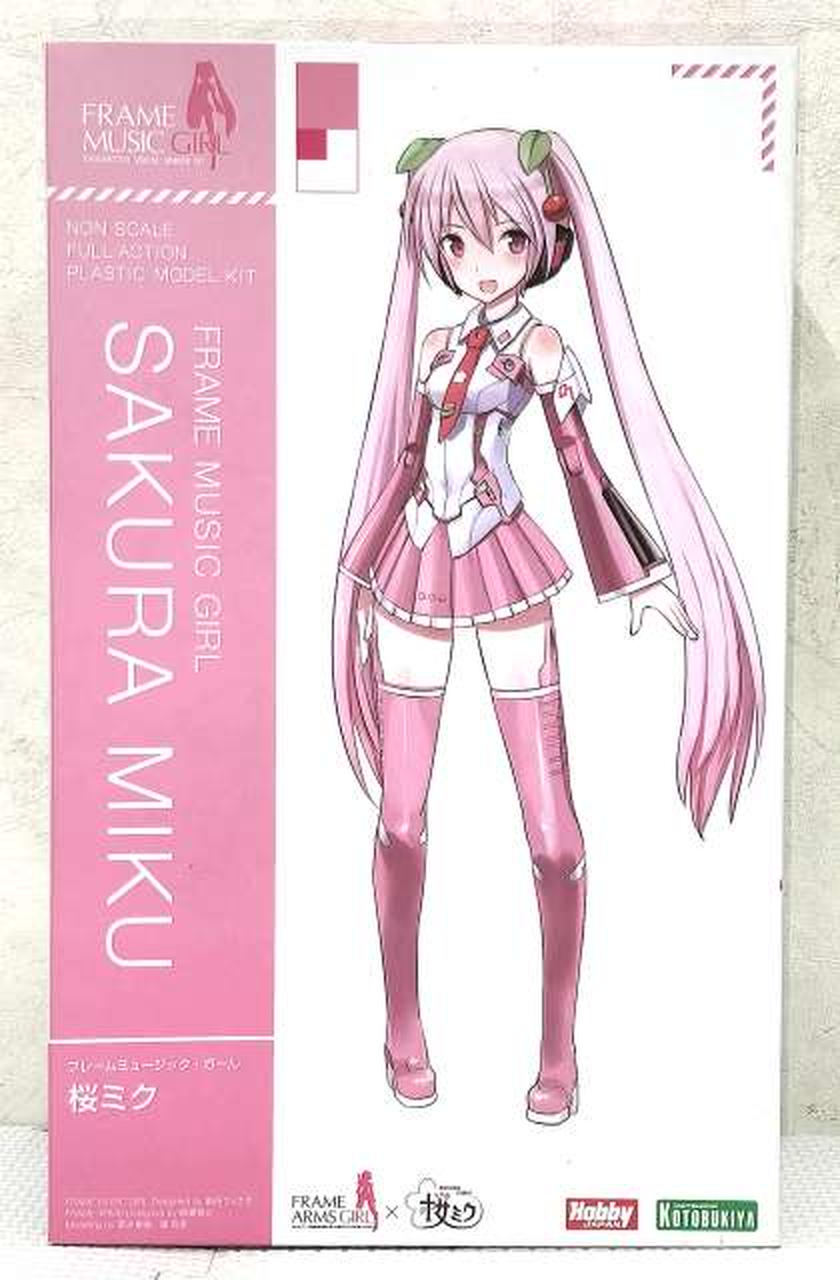 特徴的な桜カラーに全身の成形色を変更 / 髪飾りのさくらんぼを新規造形で再現 / 表情パーツは特徴的な「歌い顔」「通常左向き」「通常右向き」の3種が付属 / 表情パーツは塗装済みなので組み上げただけでも設定に近い仕上がりに / マイク&マイクスタンド、スピーカードローン&専用クリアベース、初音ミク用ベースが付属 / 初音ミクVer.4モチーフの袖なし腕パーツも付属 / PVC製の手首が左右それぞれ5種付属。手首は関節を含め、既存のフレームアームズ・ガールシリーズの手首と組換えが可能 / 瞳などのデカールが付属 / スカートが可動し、脚部の可動範囲が拡大 / 背中、腰、ふくらはぎなどに配置された3mm径の穴により既存M.S.Gシリーズ、フレームアームズ各シリーズのパーツの併用が可能 |