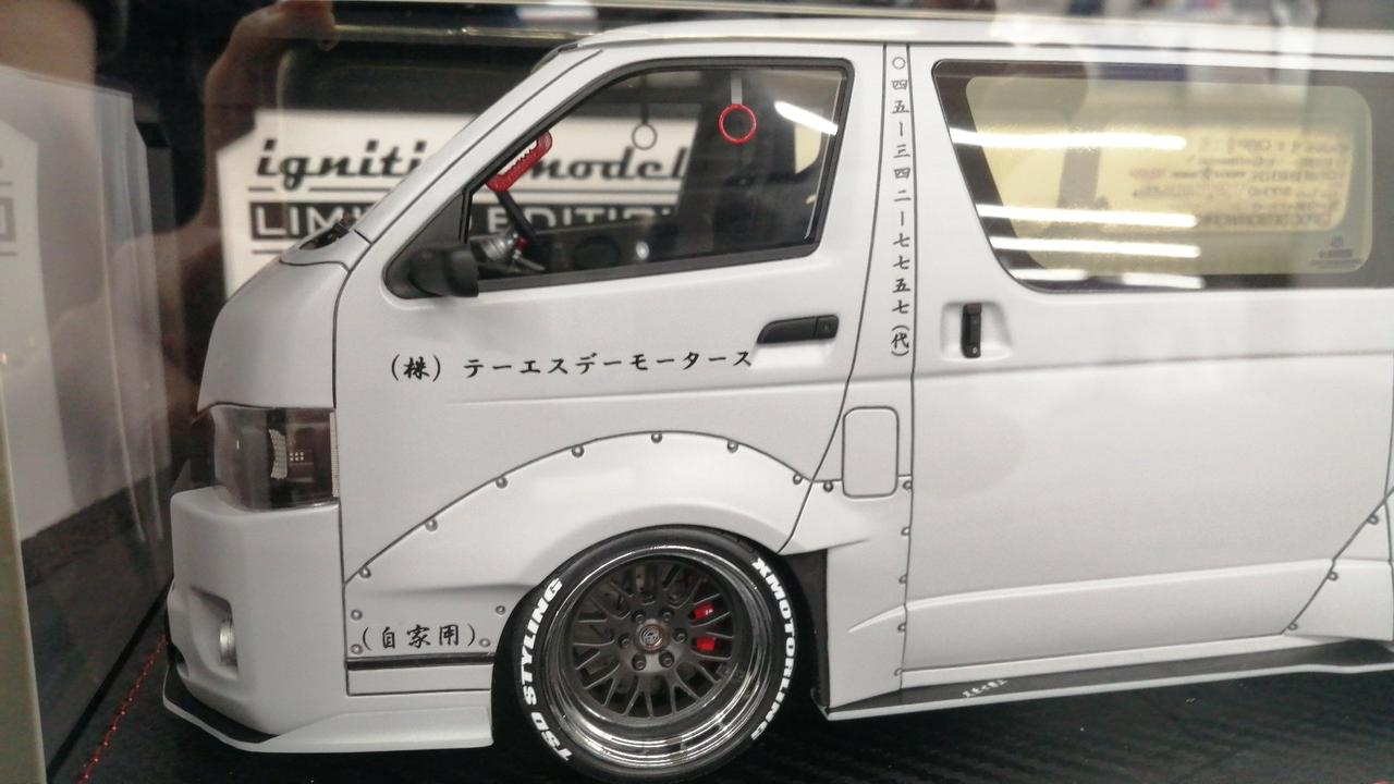 T・S・D WORKSのデモカー「ハイエース ワイドボディ」を1/18スケールレジン素材でモデル化。 |