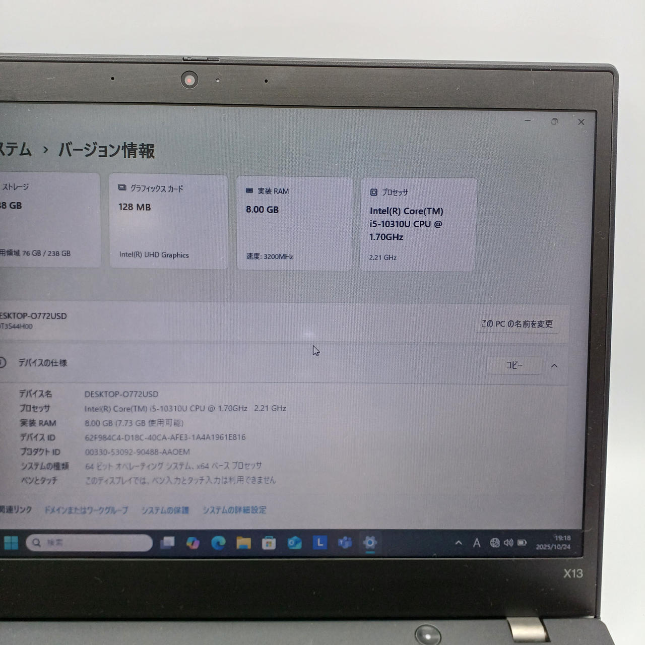 CPU: Core i5–10310U@1.70GHz OS:Windows 11 Pro |