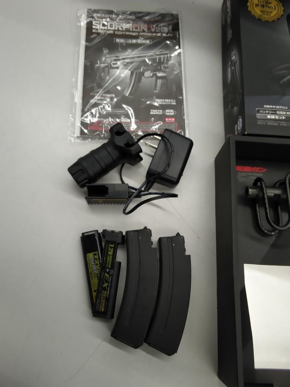 動作確認済み バッテリー、アダプタ・マガジン計3本、サプレッサー、グリップ付属 |