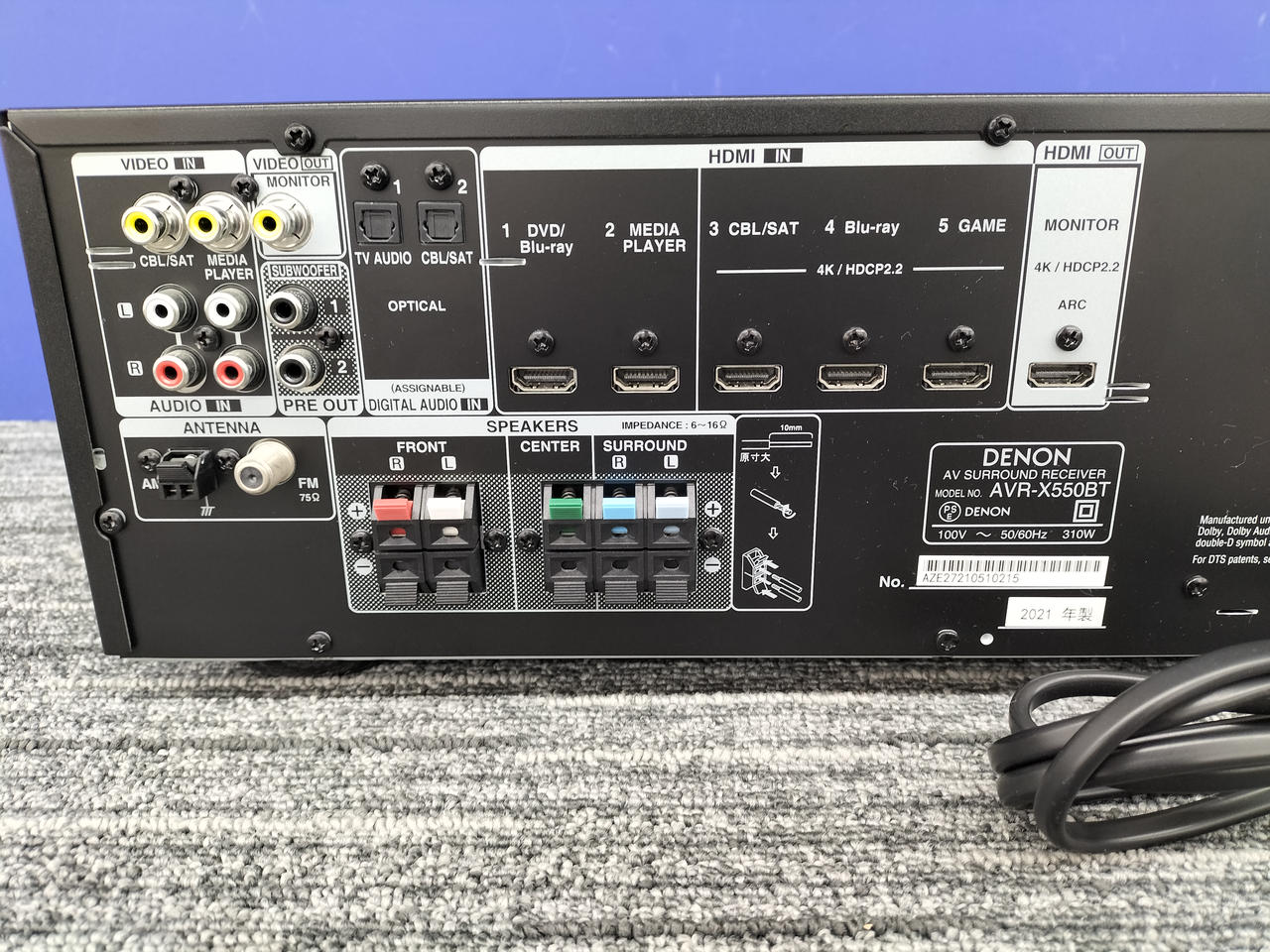 サラウンドチャンネル:5.2ch HDMI端子入力:5系統 HDMI端子出力:出力×1 オーディオ入力:2系統 |