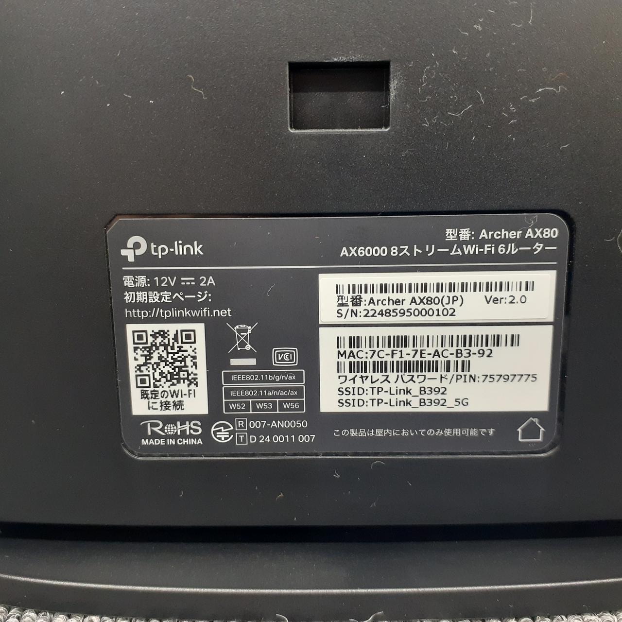 周波数:2.4/5GHZ IPV6:○ セキュリティ規格:WPA/WPA2/WPA3 |