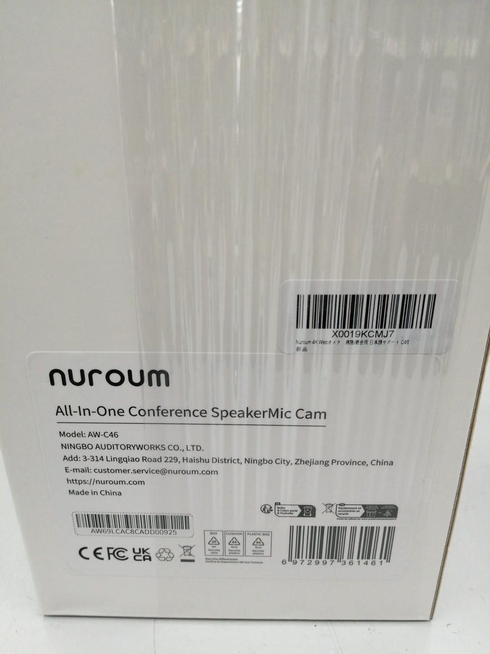 外箱、リモコン、印刷物、電源ケーブル |