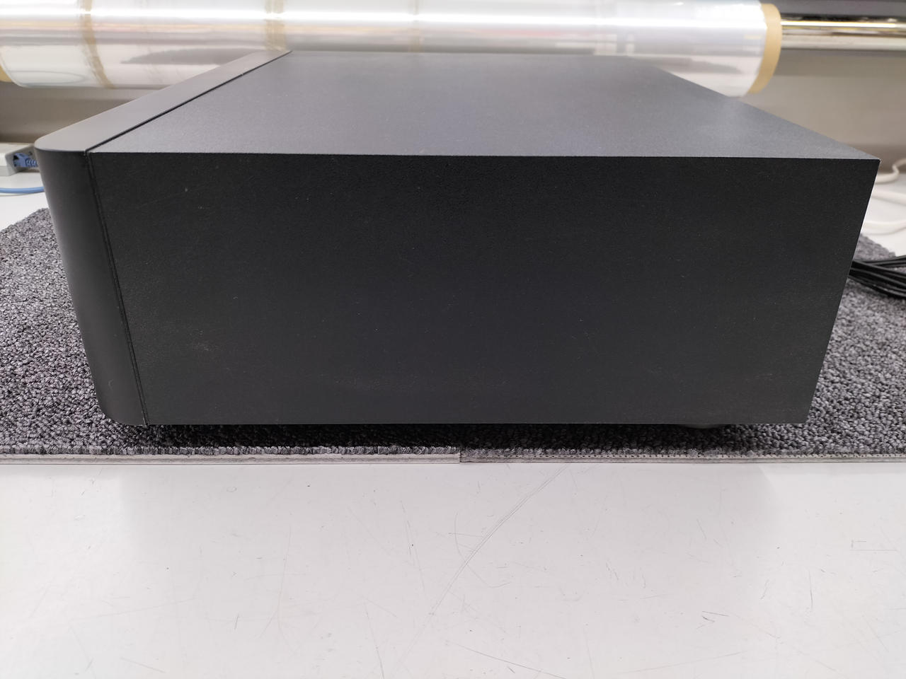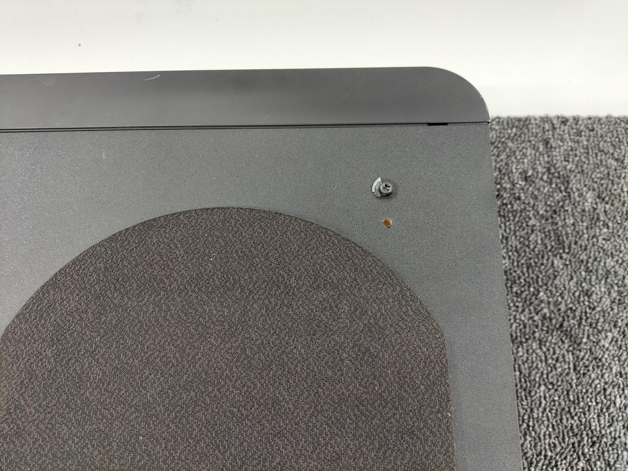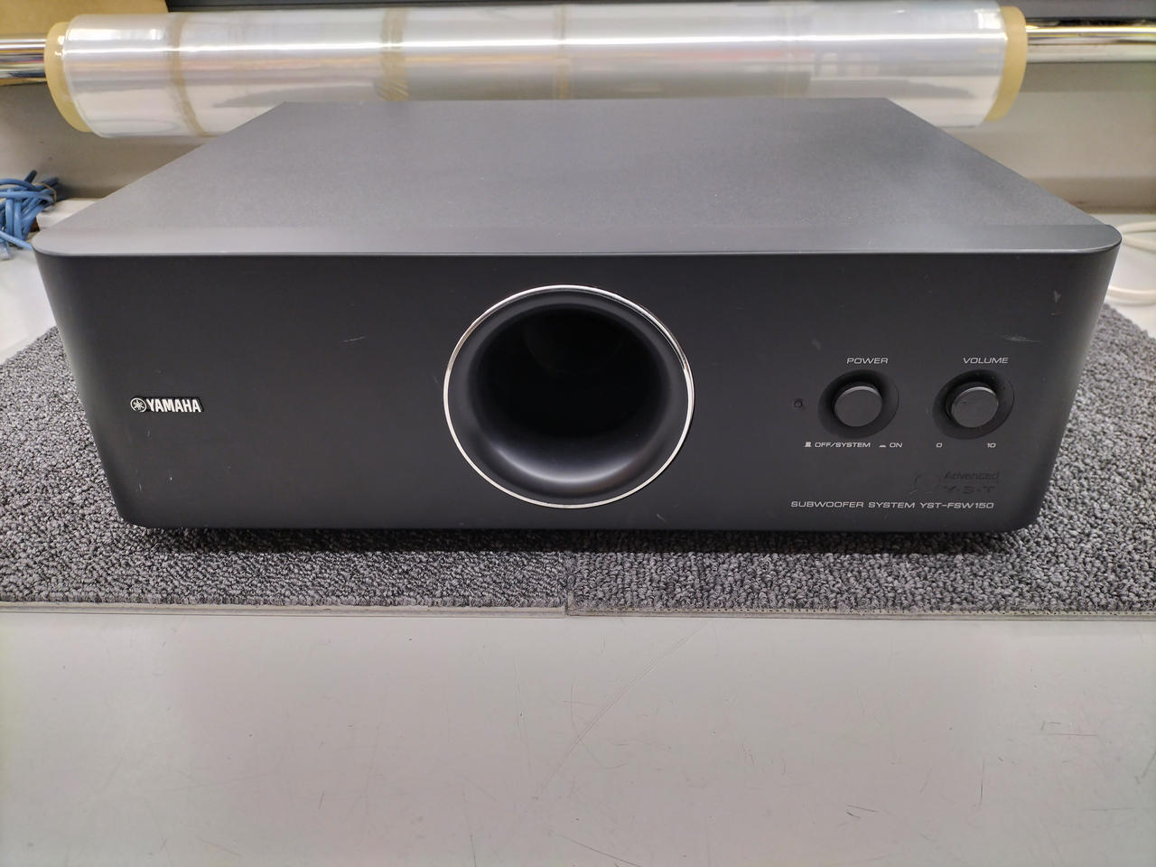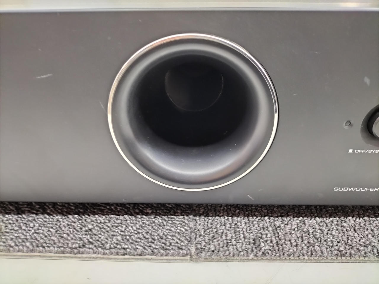 テレビラックにも収まる独自デザインを採用した、省スペース設計のサブウーハー |