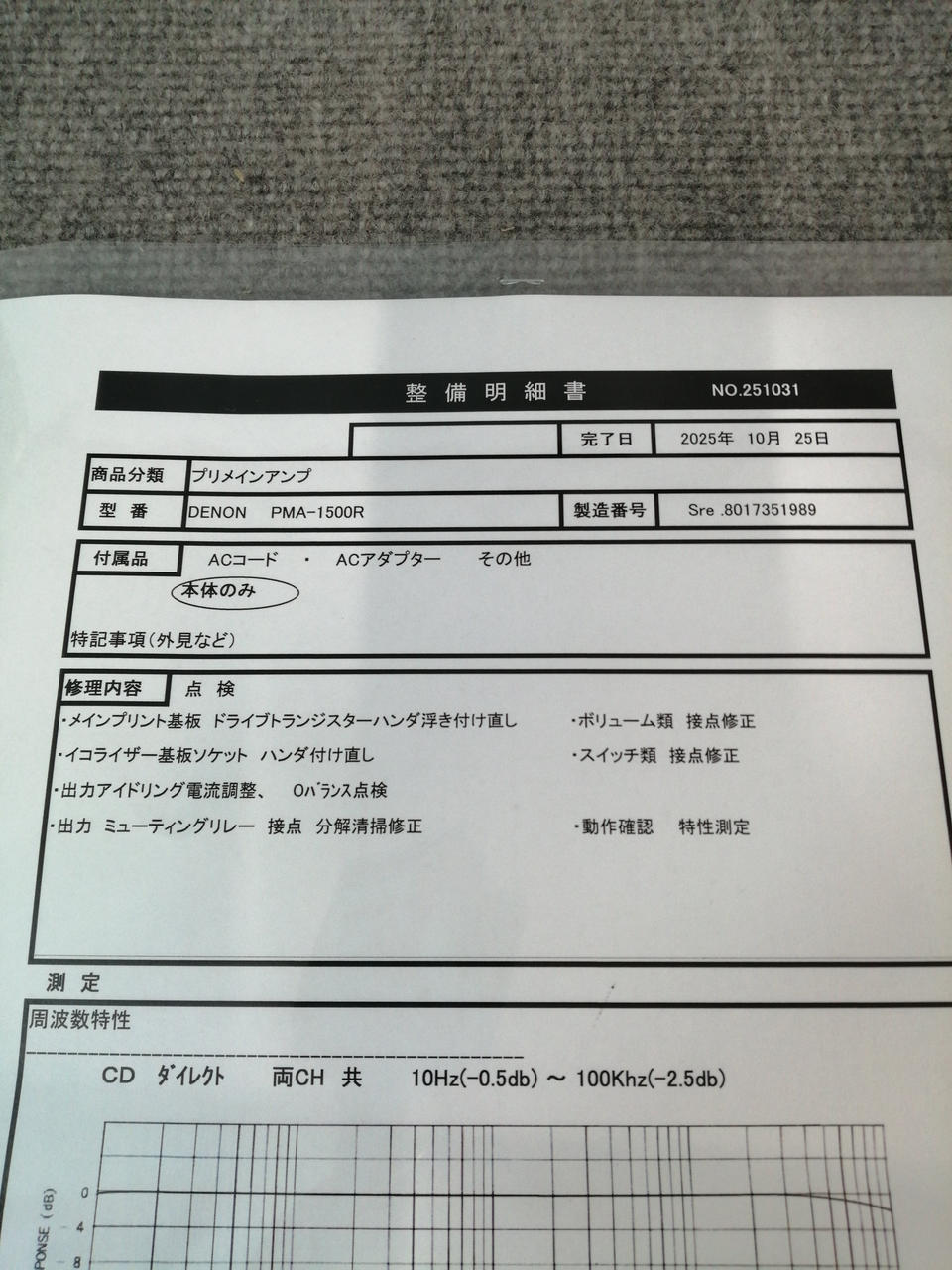2025.10月当店指定業者にてメンテナンス済み |