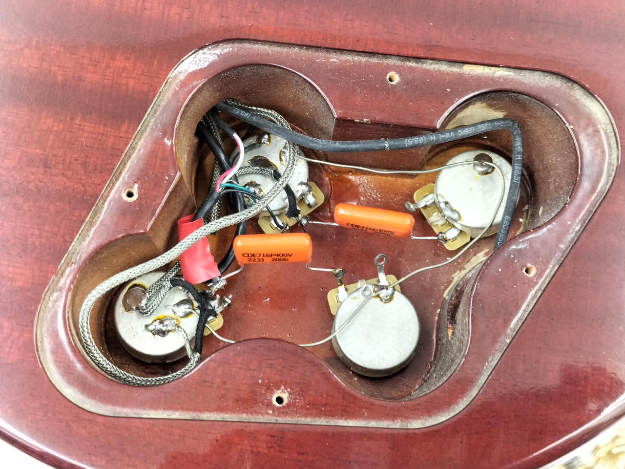 その他CTS製ポット、SwitchCraft製ジャックとスイッチ、オイルコンデンサーにそれぞれ交換されています。 |