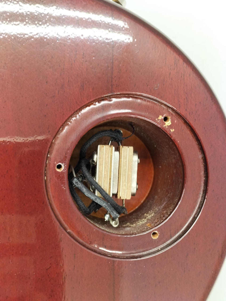 PUはSeymour Duncan 「APH-2n」,「APH-2b」、配線はGIBSONの50年代に施されていたワイヤリングと同じに、 |