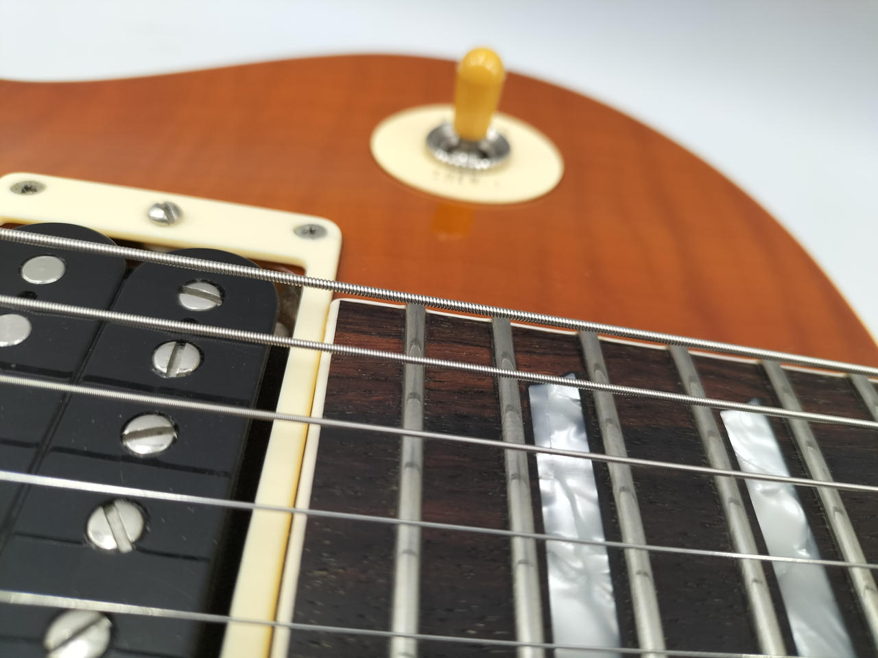 PUはSeymour Duncan 「APH-2n」,「APH-2b」、配線はGIBSONの50年代に施されていたワイヤリングと同じに、 |